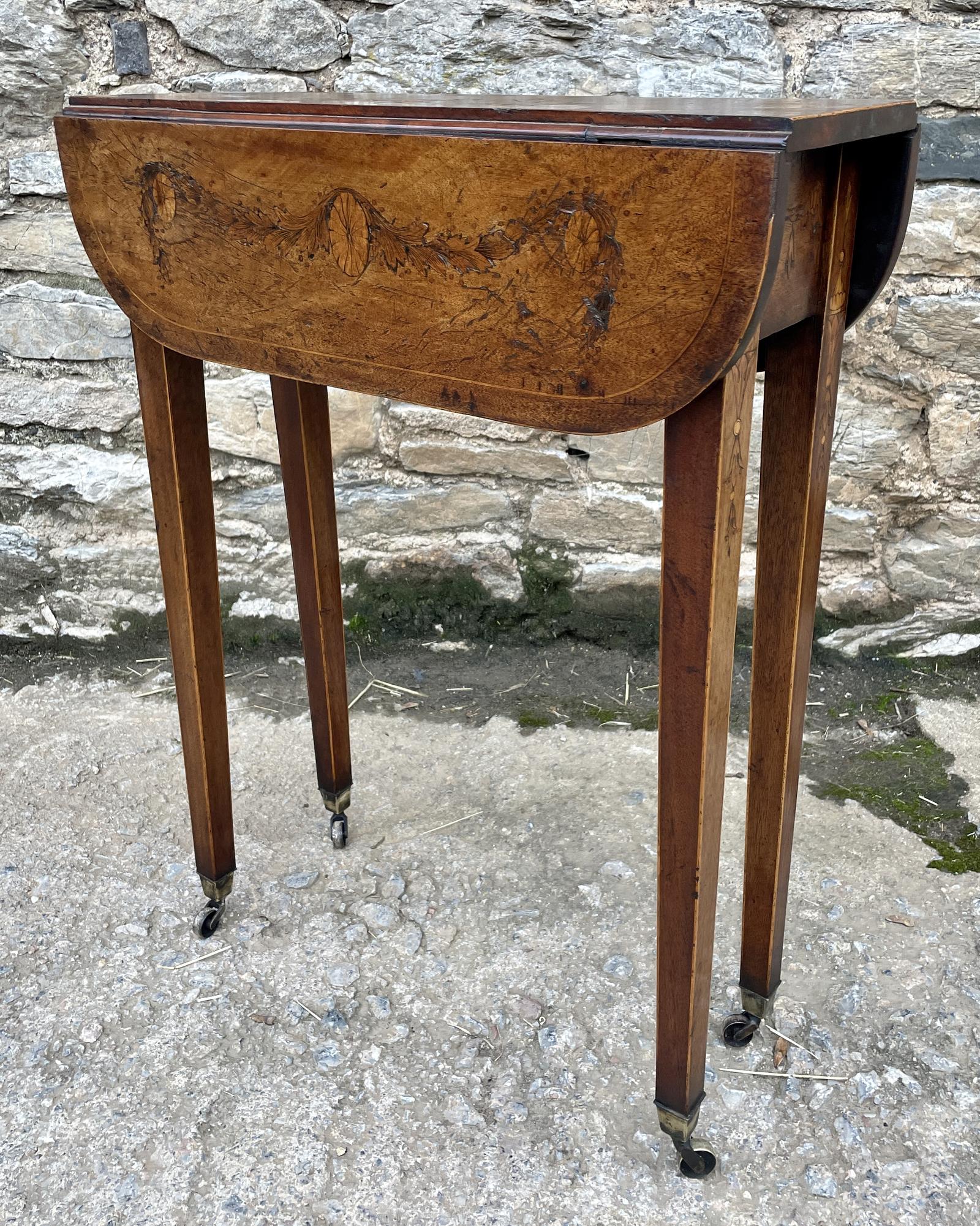 Small Georgian Marquetry Inlaid Drop Leaf Table (1 of 26)