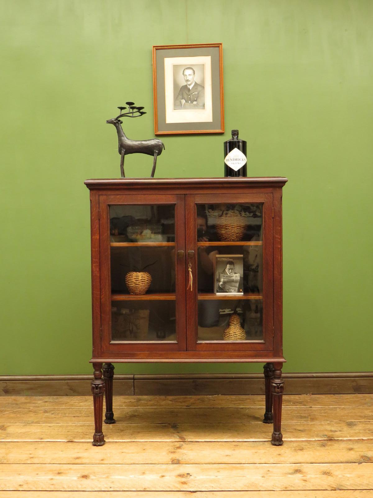 Small Glazed Oak Bookcase Cabinet with Lockable Doors