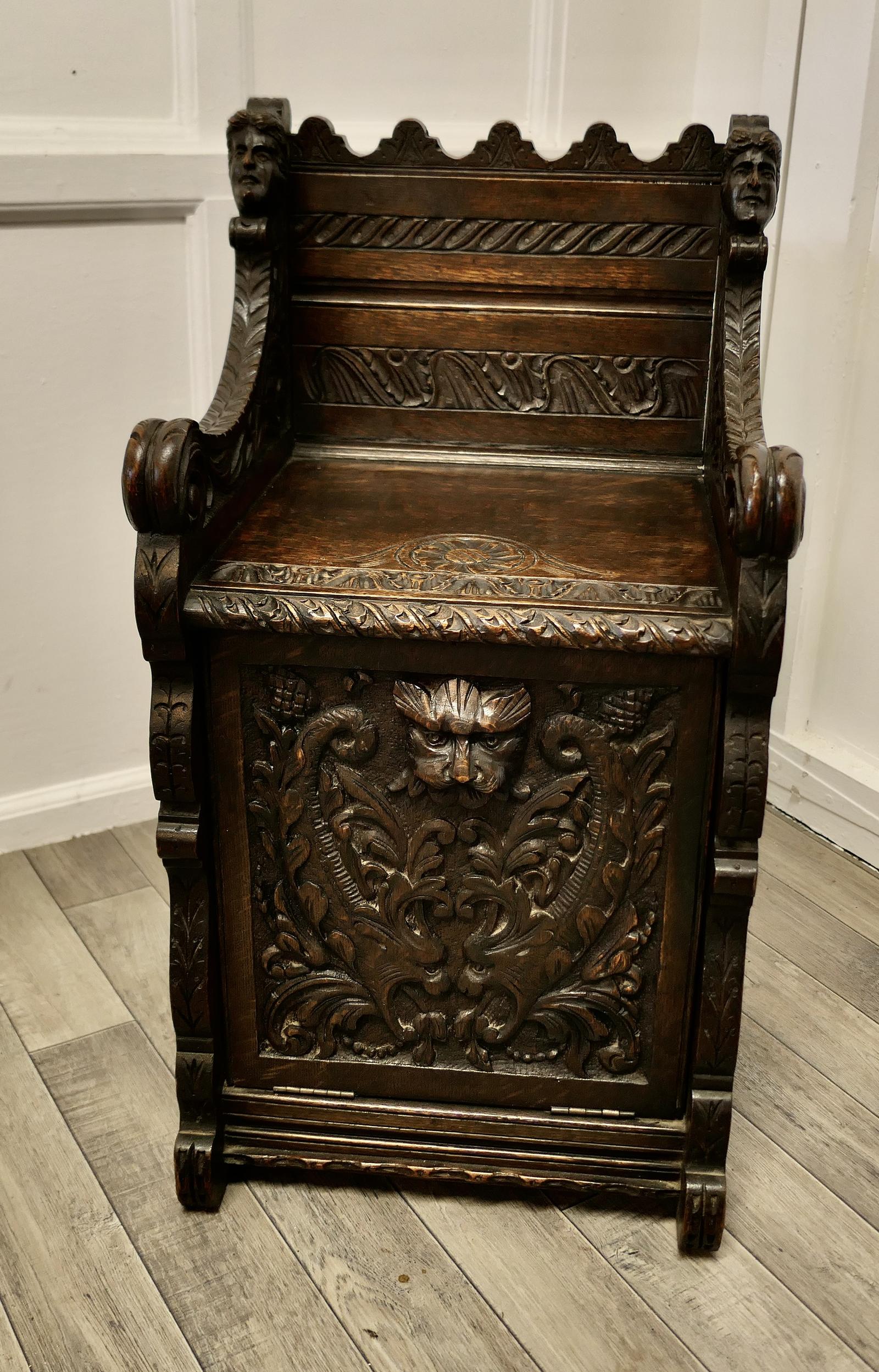 Small Gothic Carved Oak Green Man Settle, Hall Seat
