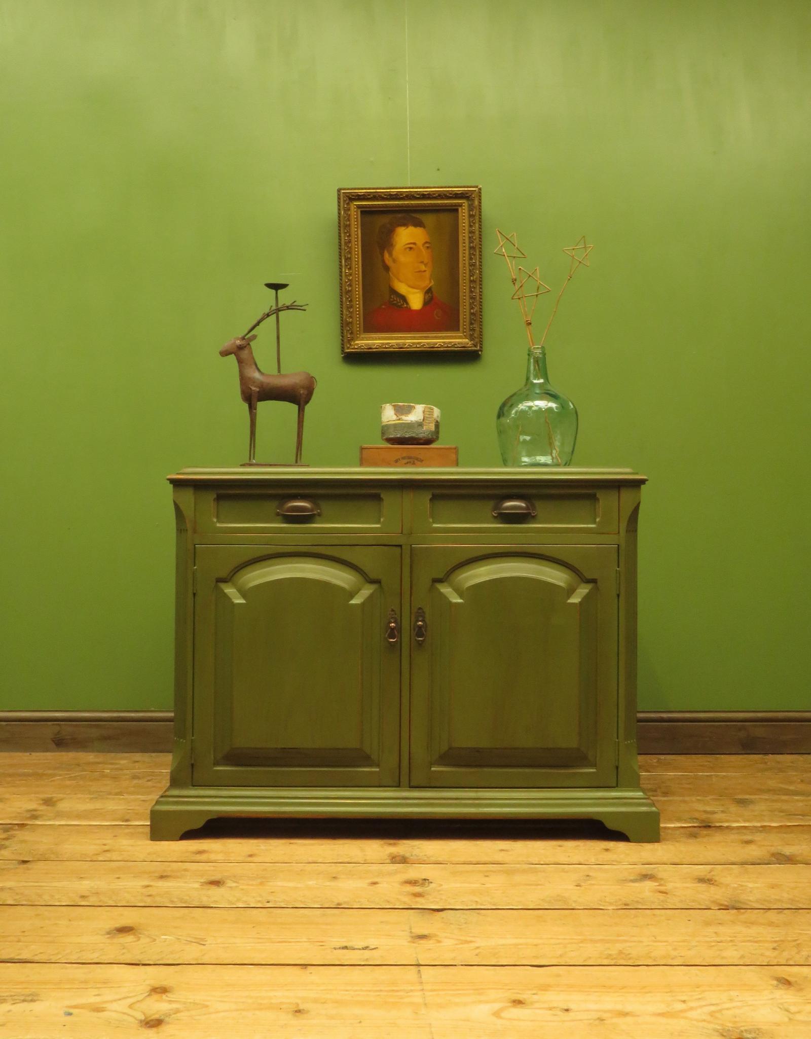 Small Green Painted Sideboard Cupboard with Cup Handles