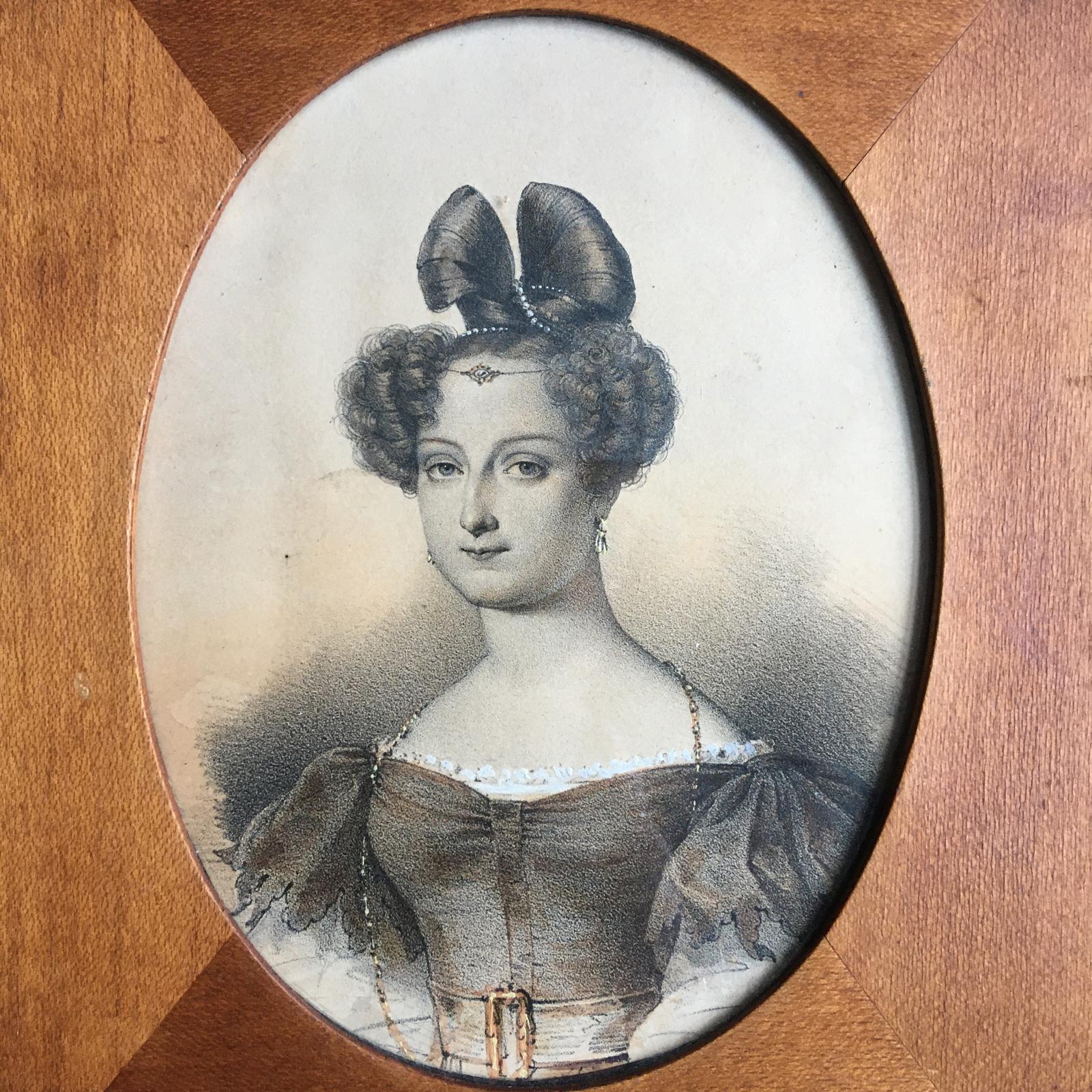 Small Hand Tinted Engraving of a Woman Sporting a Very Fine Apollo Knot