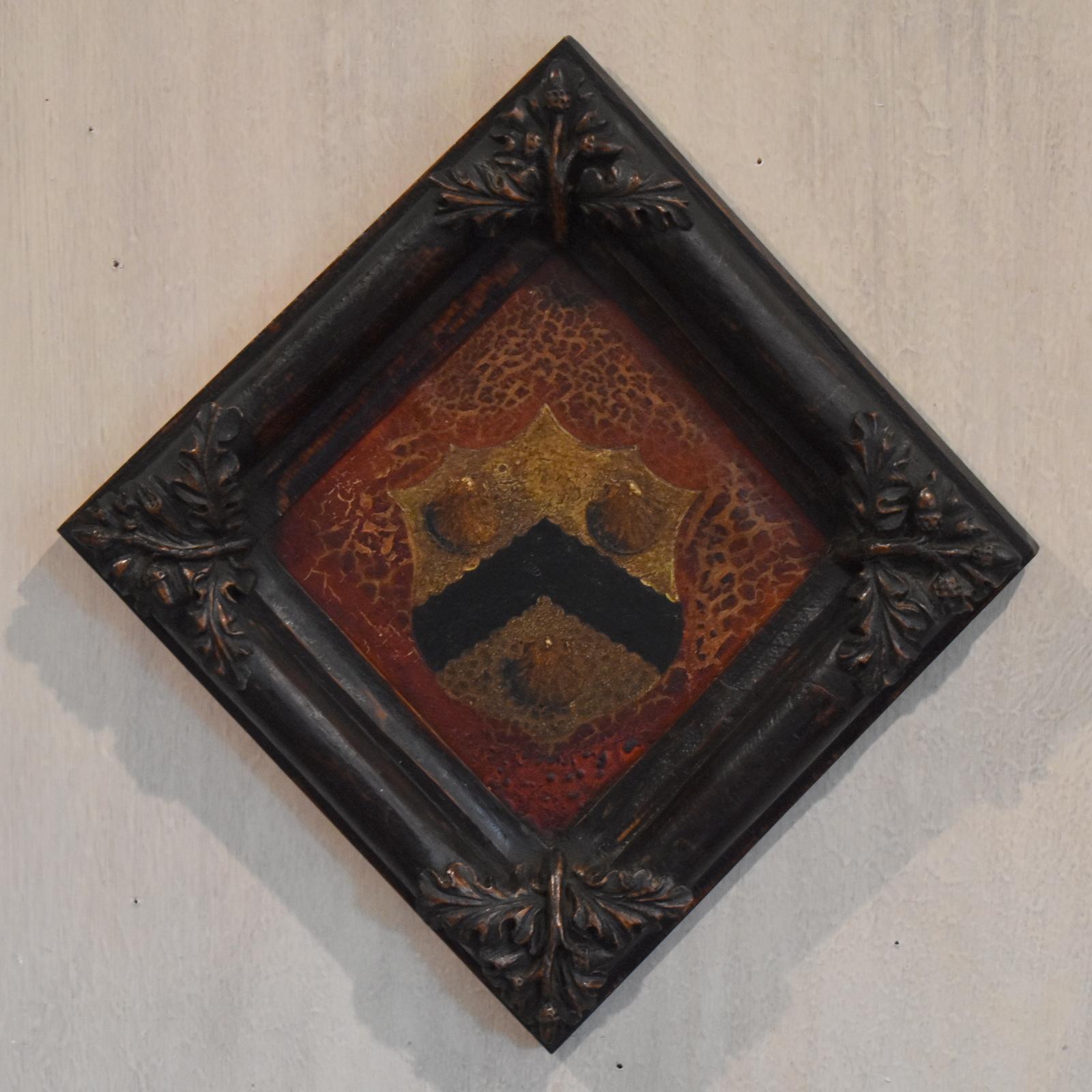 Small Heraldic Oil Painting in Carved Oak Frame (1 of 6)