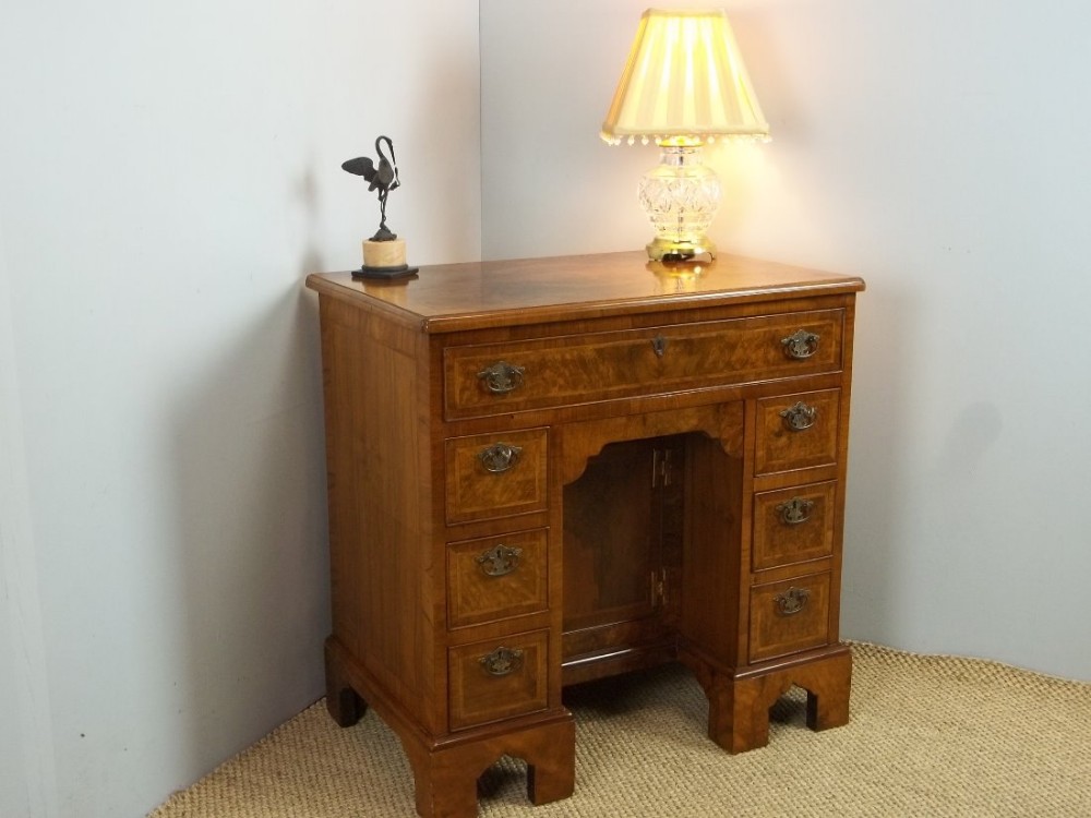 Small Kneehole Figured Burr Walnut Desk Comprising Dressing Chest of Drawers of Queen Anne Design C.1920