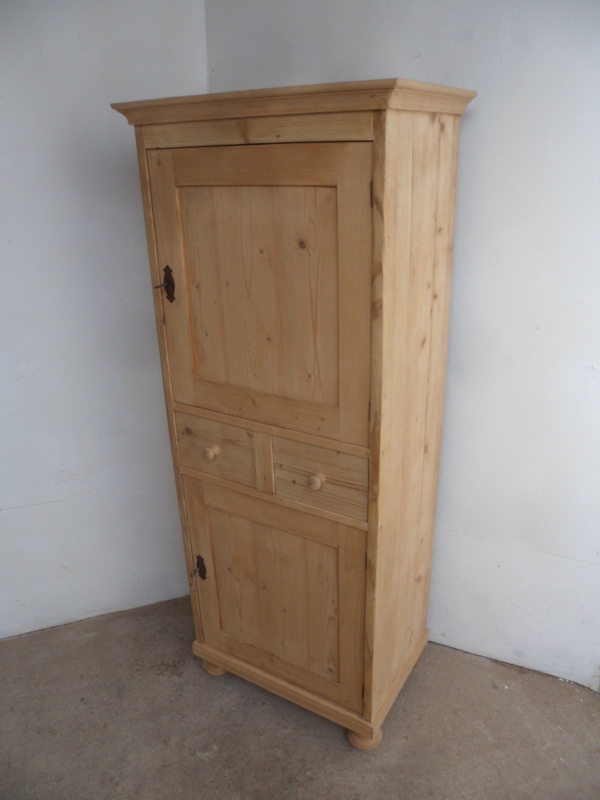 Small Narrow Old Pine 2 Door 2 Drawer Cupboard to wax / paint