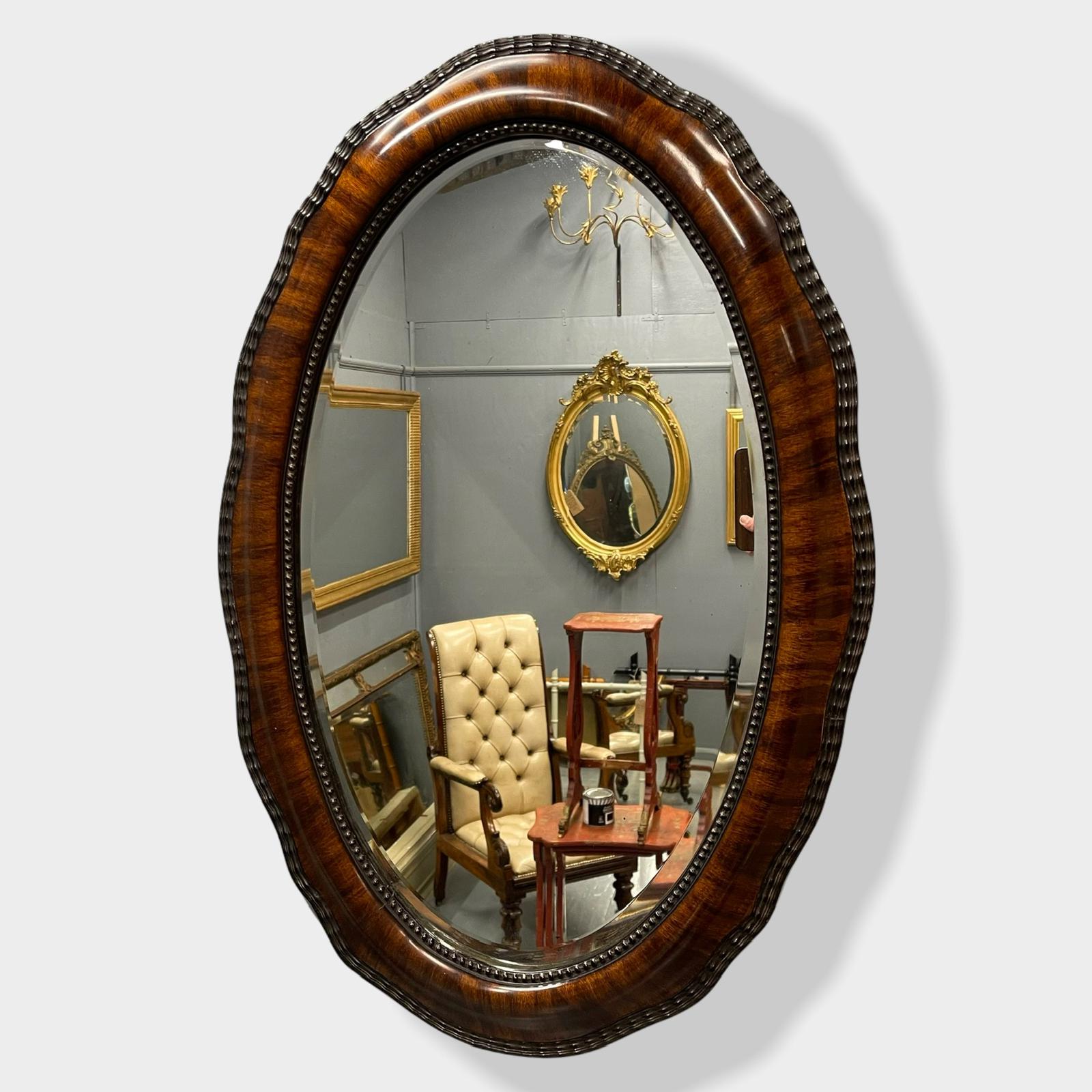 Small Oval Rosewood Serpentine Cushion Frame Mirror
