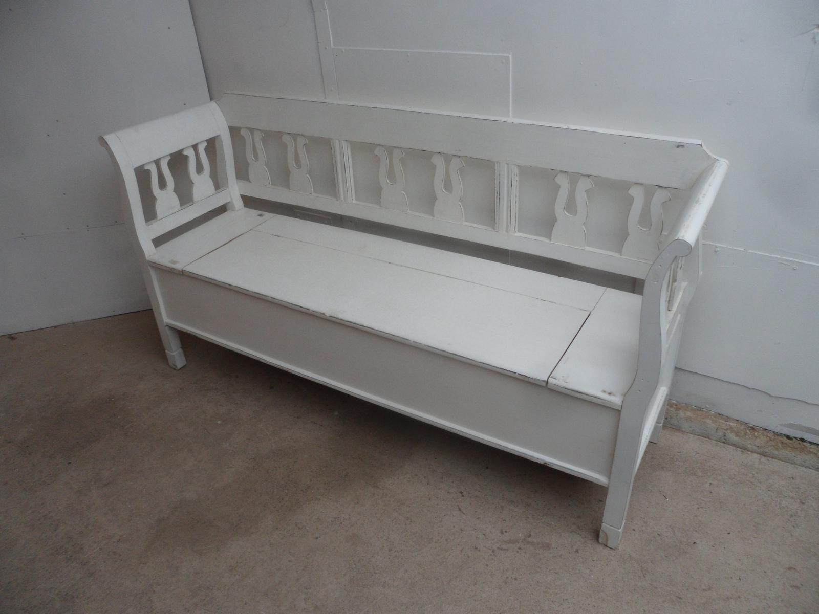 Small Painted White 3 Seater Antique Pine Hall / Kitchen Box / Settle/Bench