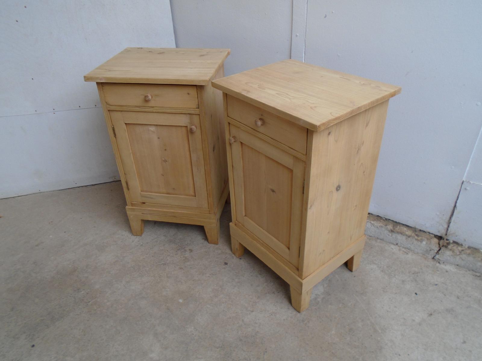 Small Pair of Art Deco Antique Pine Bedside Cabinets to wax / paint