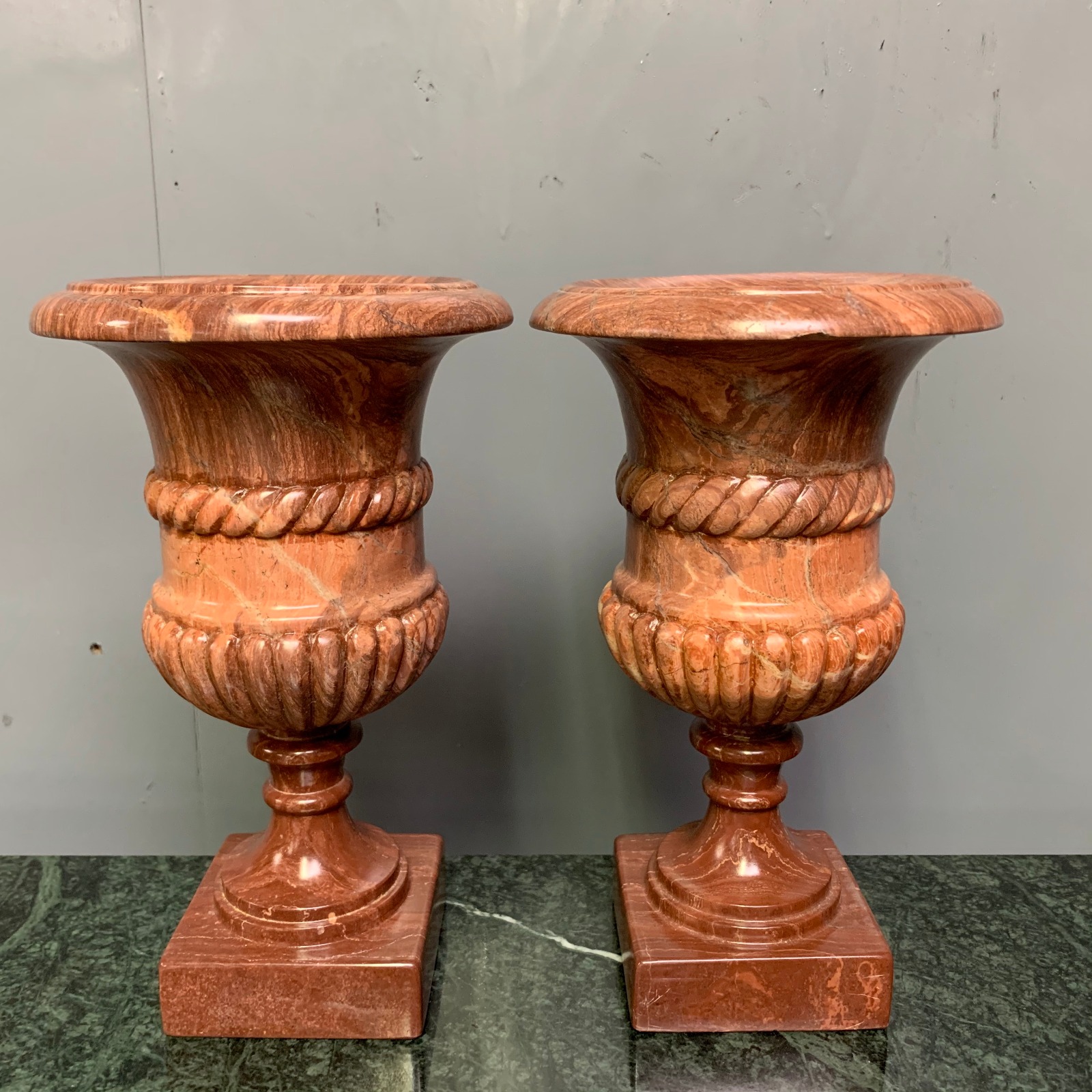 Small Pair of 'Rouge' Marble Decorative Urns