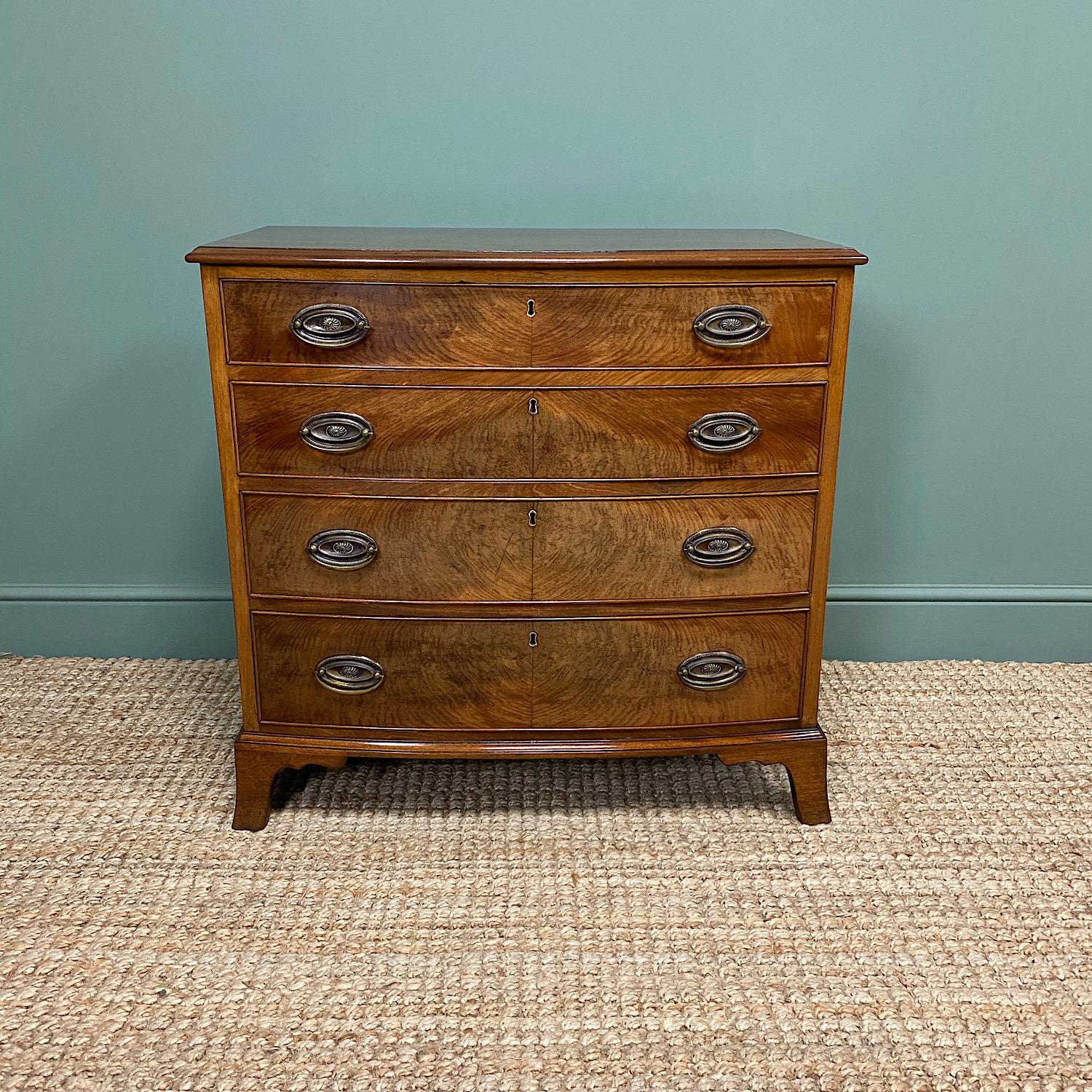 Small Quality Edwardian Mahogany Antique Bow Fronted Chest Of Drawers