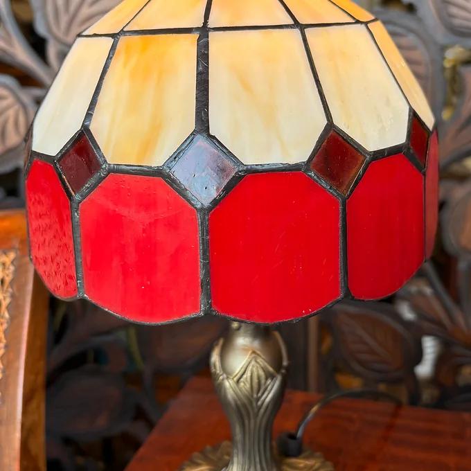 Small Red & Cream Tiffany Style Lamp (1 of 2)