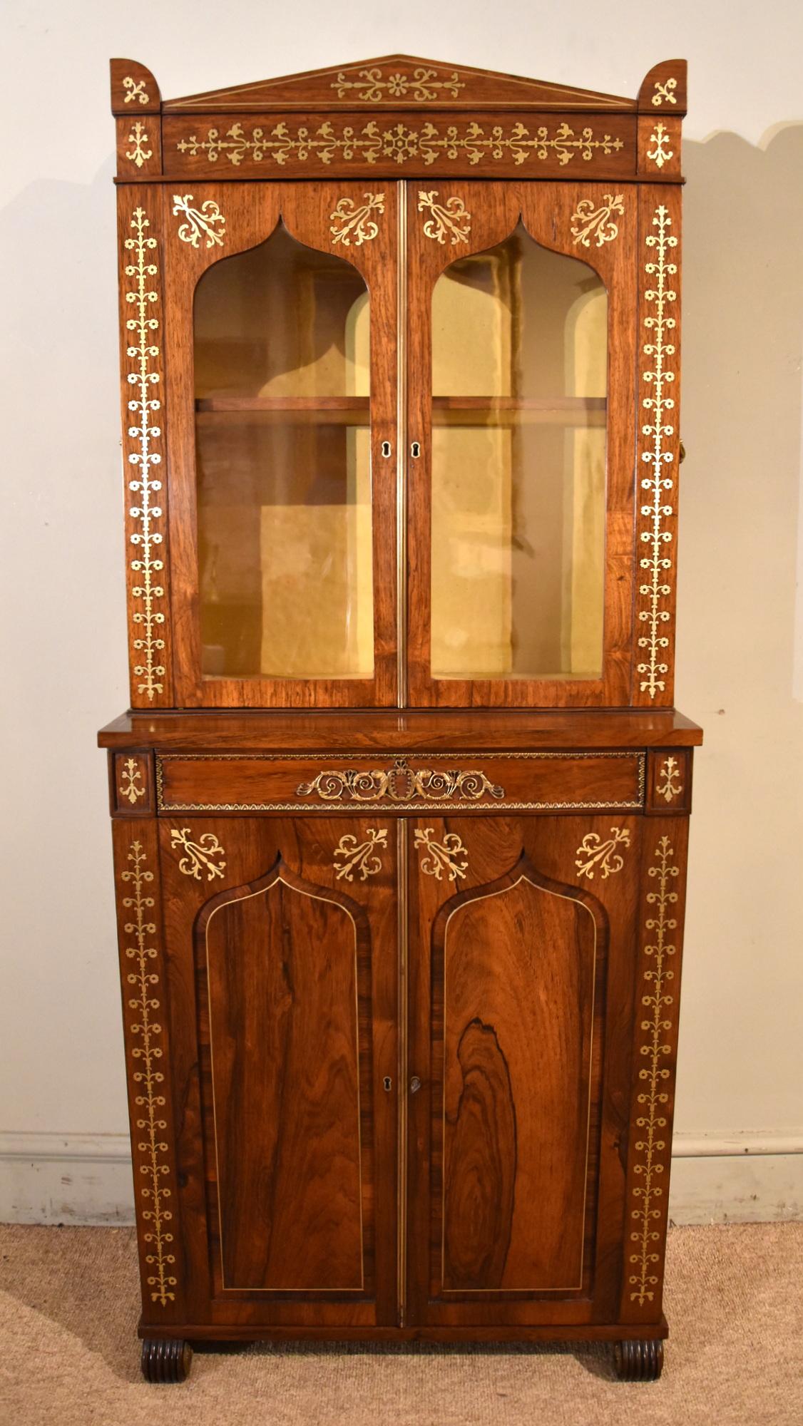 Small Regency Rosewood Brass Inlaid Cabinet Bookcase (1 of 14)