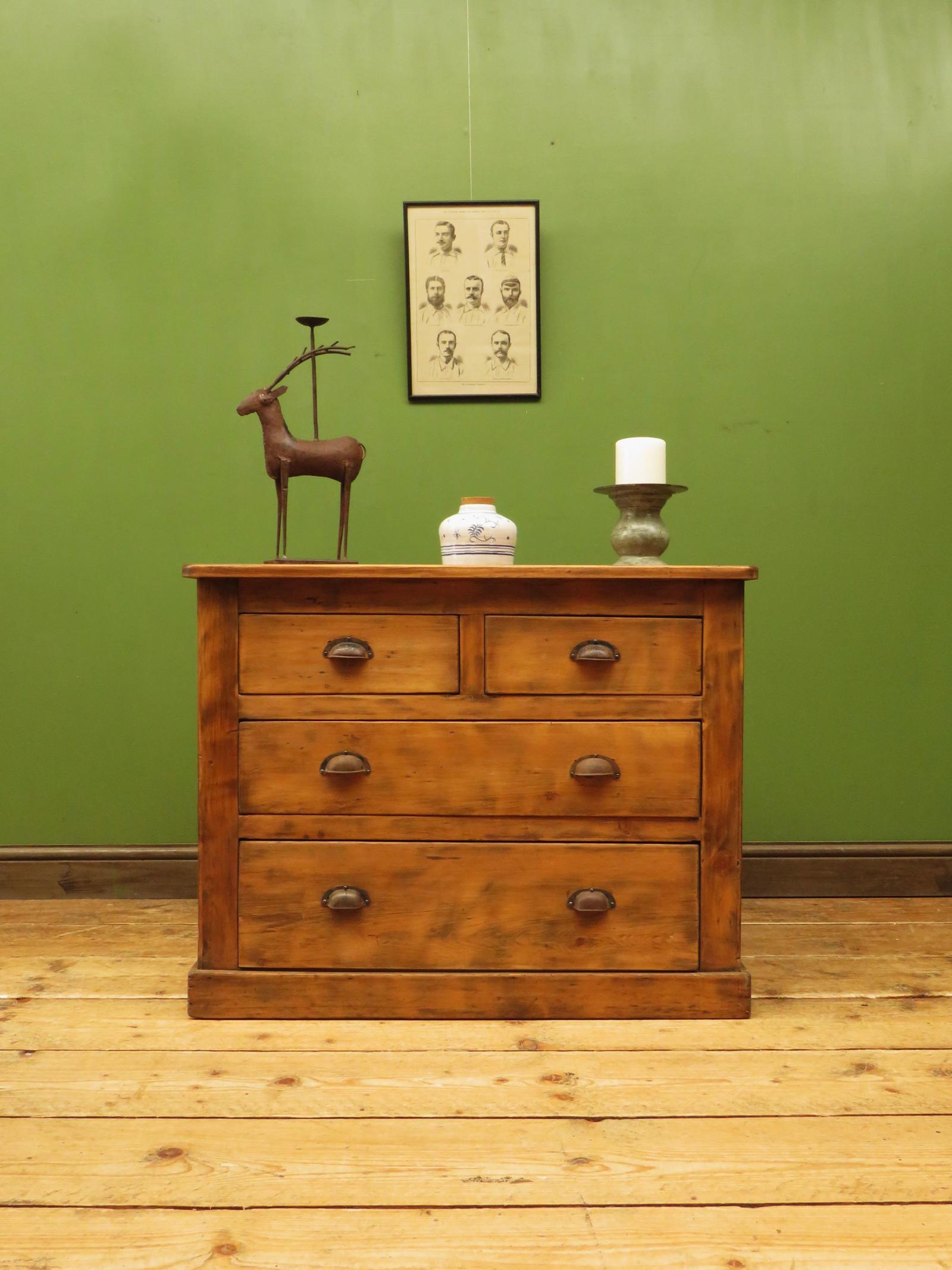 Small Rustic Pine Chest of Drawers with Cup Handles