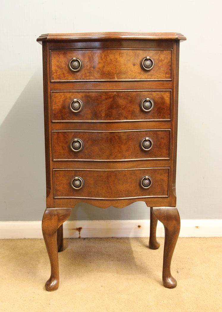 Small Serpentine Burr Walnut Chest of Four Drawers (1 of 9)