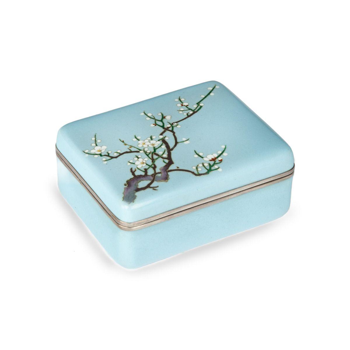 Small Showa Period Cloisonné Box with a Single Branch of Blossom (1 of 5)