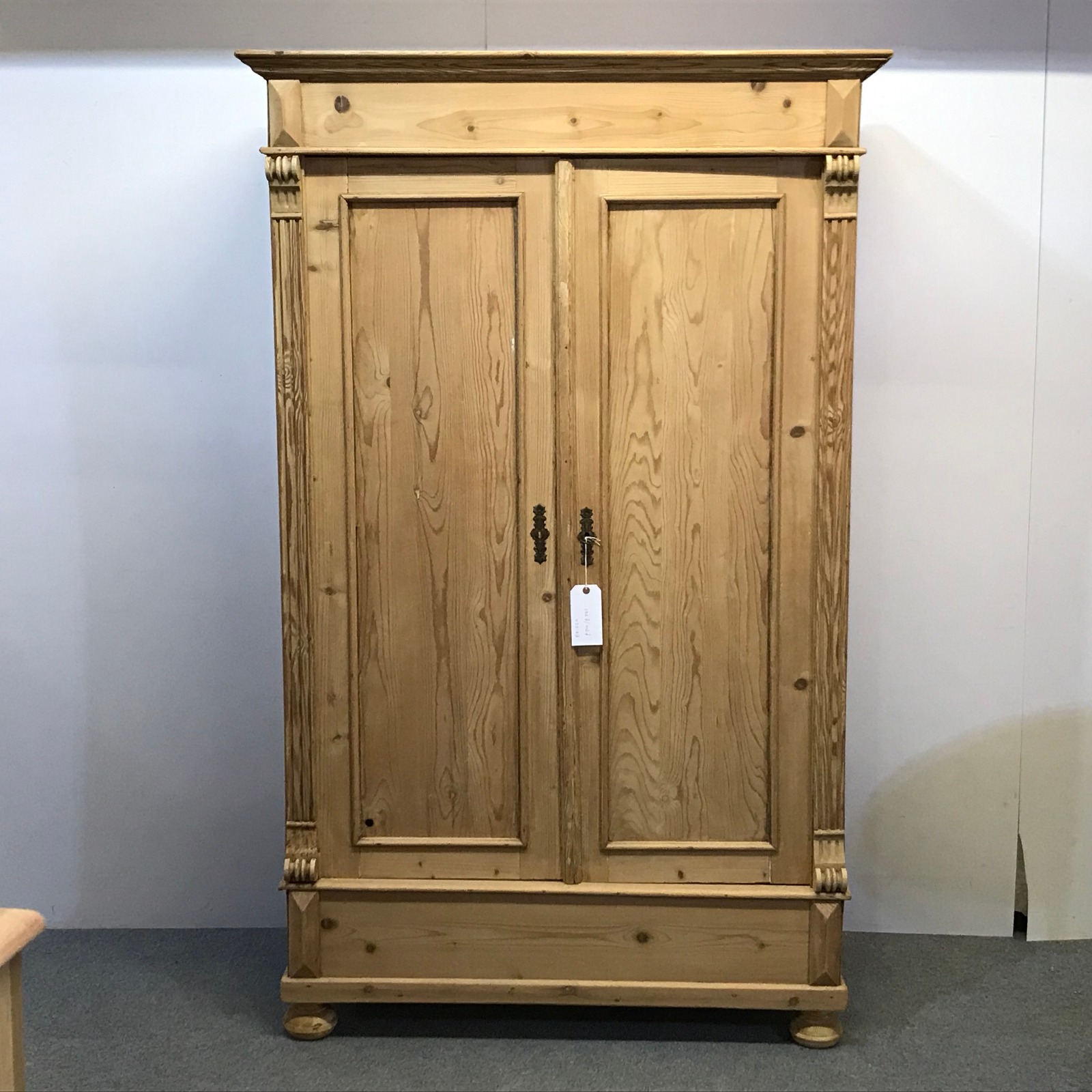 Small Slender Antique Pine Double Wardrobe 'Dismantles'