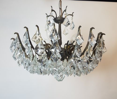 Small Spider Multi Arm Crystal & Aged Brass Chandelier; Rewired