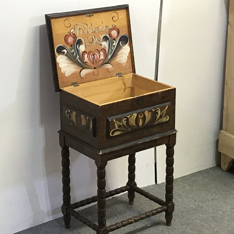 Small Swedish Folk Art Painted Pine Bible Box on Legs