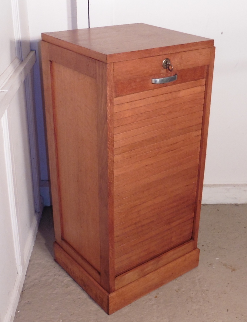 Small Tambour Fronted Oak Filing Cabinet c.1930