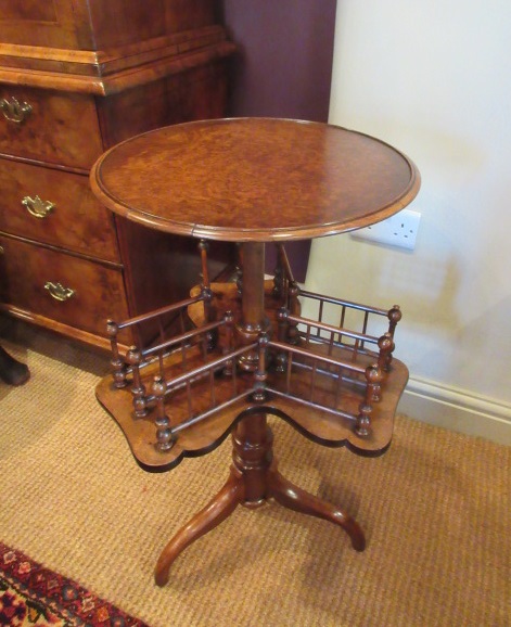 Small Victorian Antique Burr Walnut Revolving Bookcase