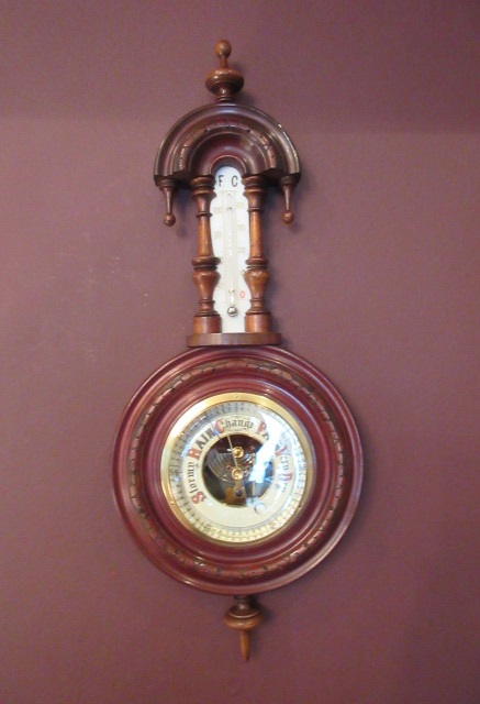 Small Victorian Antique Walnut Pendant Banjo Barometer