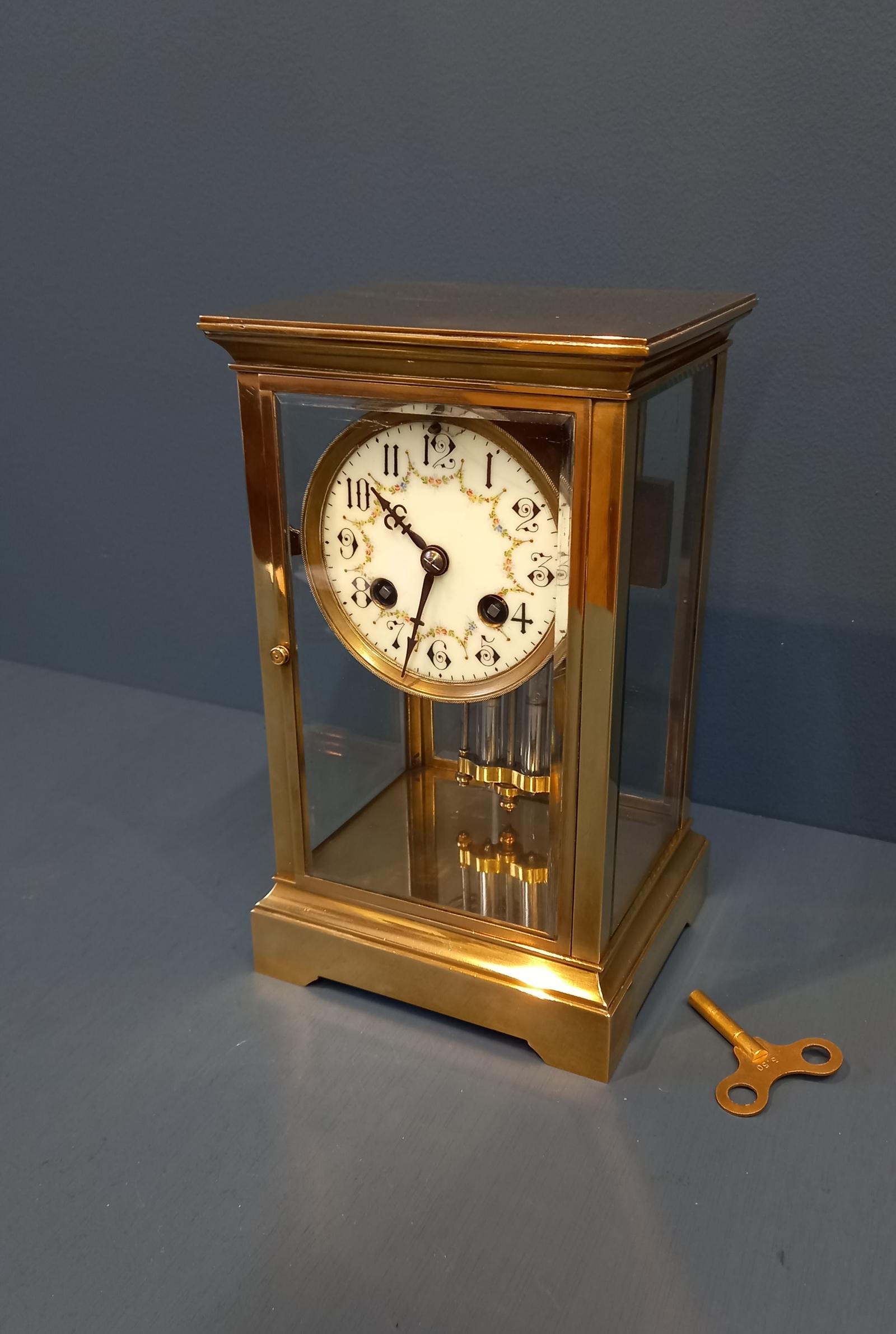 Small Victorian Brass 'Four Glass' Mantel Clock