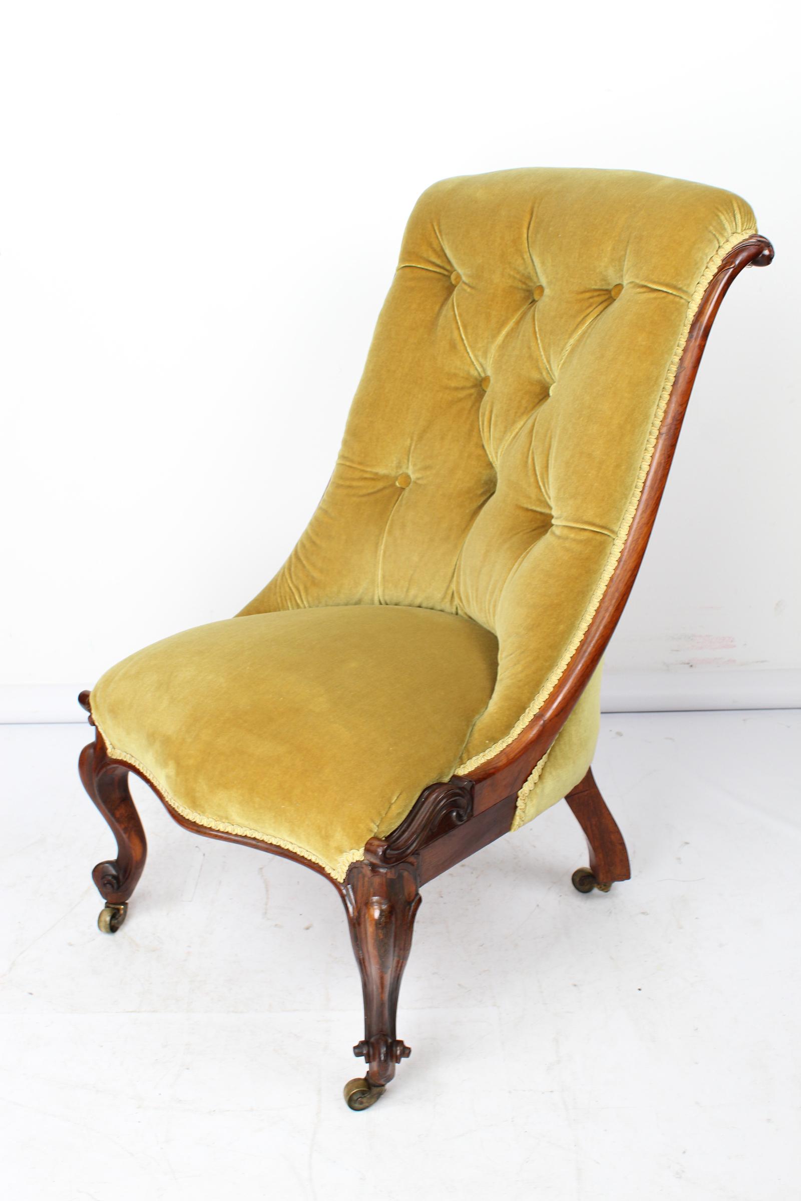 Small Victorian Button Back Rosewood Slipper Chair (1 of 13)
