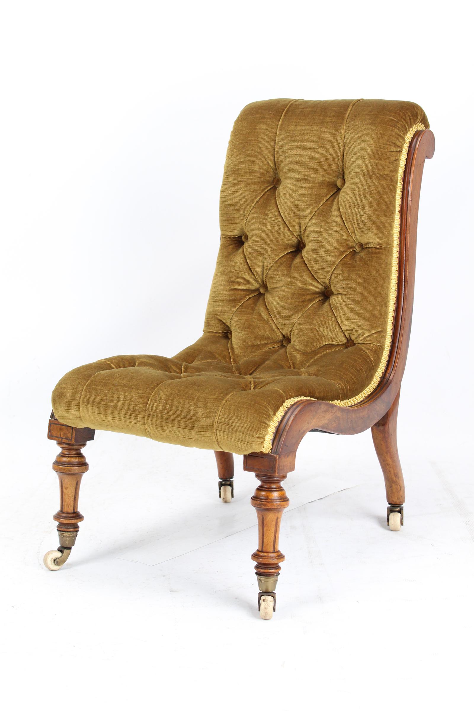 Small Victorian Button Back Walnut Slipper Chair (1 of 13)