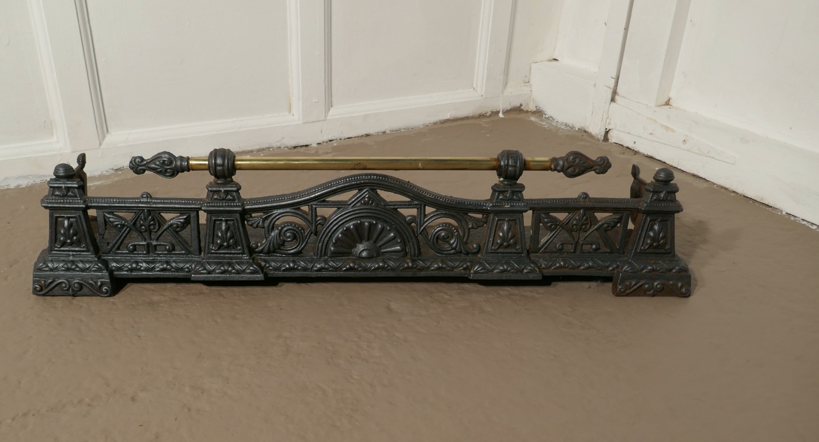 Small Victorian Cast Iron & Brass Fender or Dog Grate