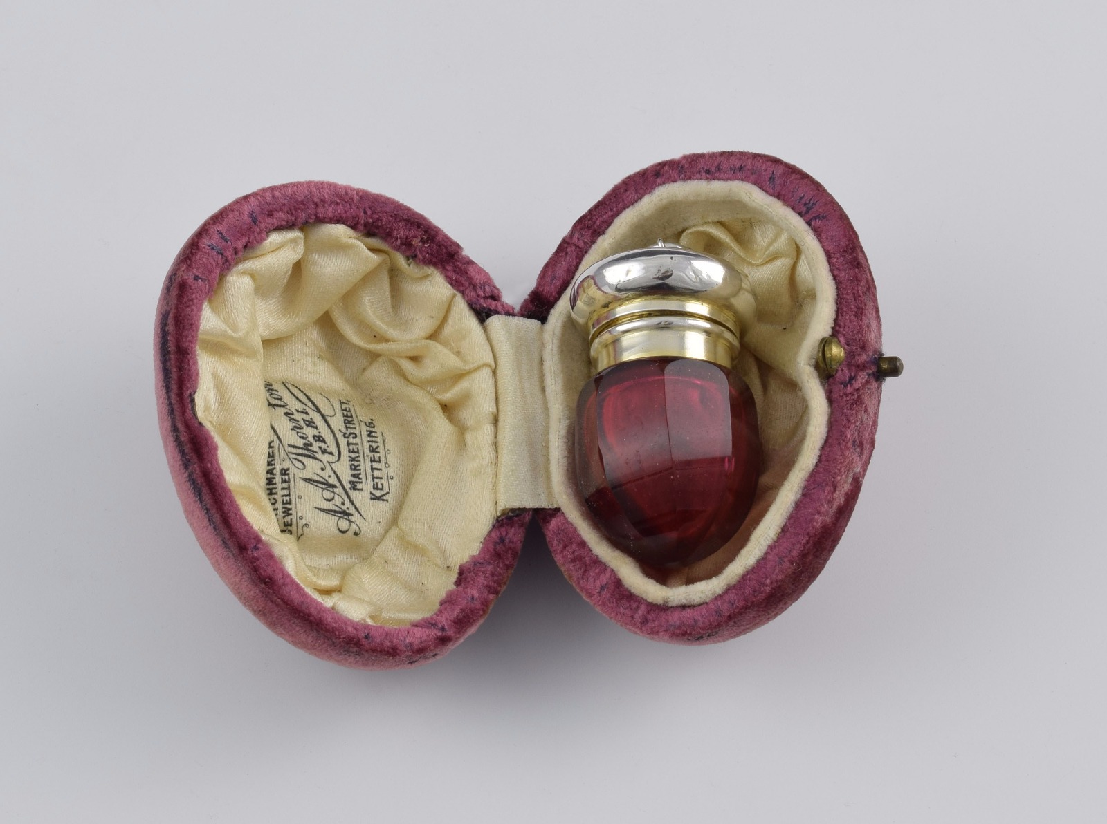Small Victorian Ruby Glass & Silver Vinaigrette in Velvet Case (1 of 1)