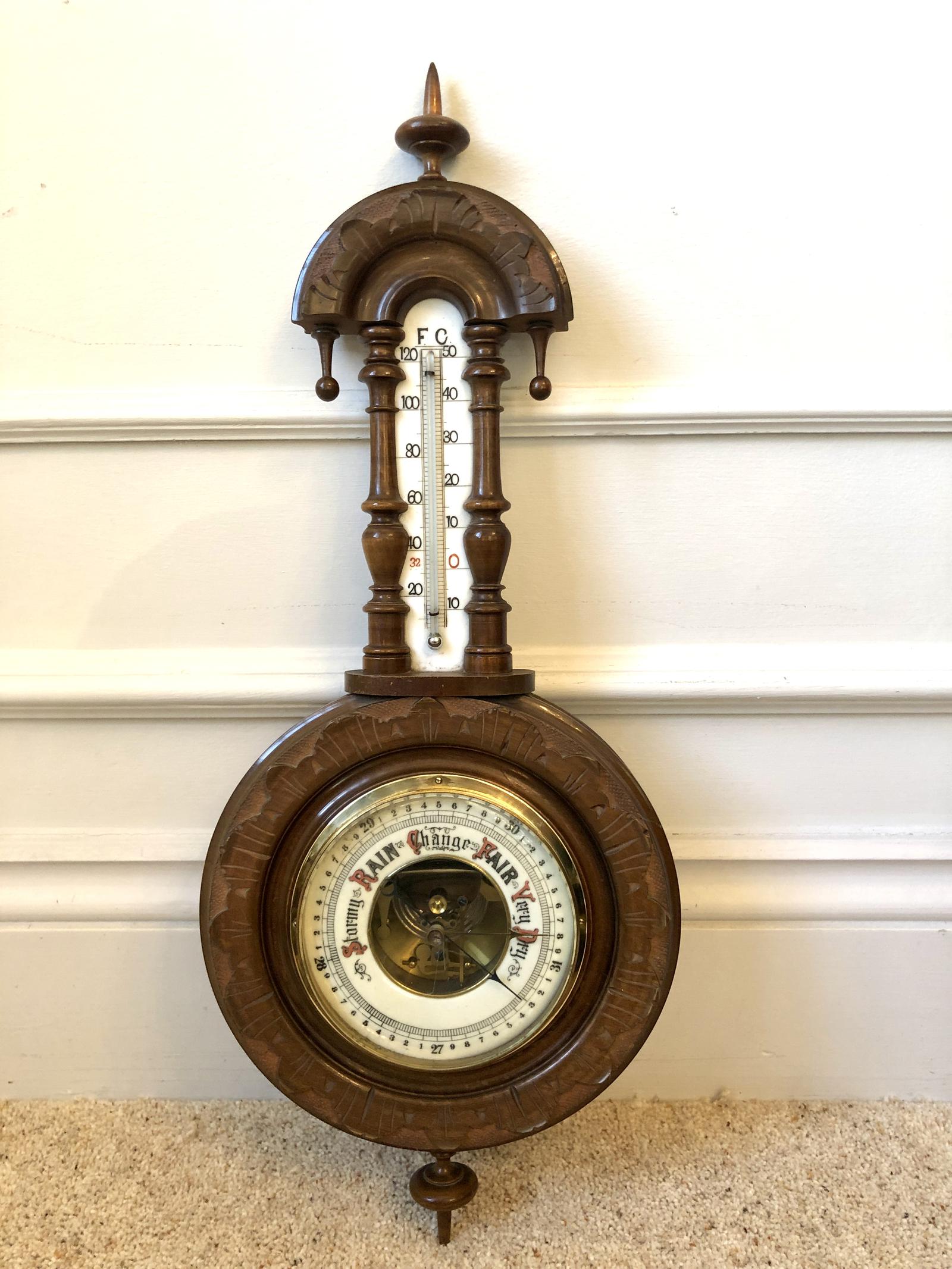 Small Victorian Walnut Aneroid Wheel Barometer (1 of 8)