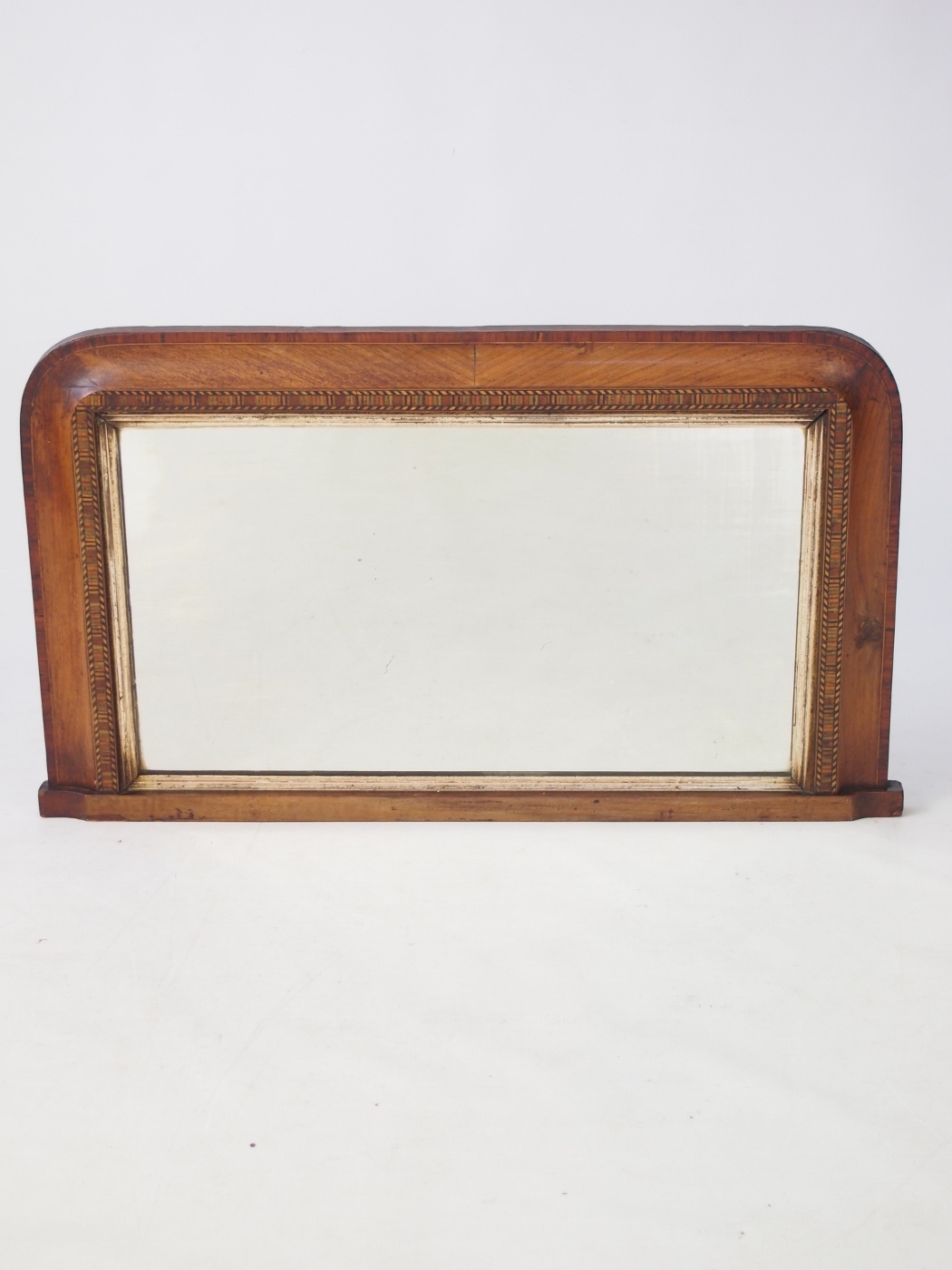 Small Victorian Walnut & Marquetry Overmantle Mirror