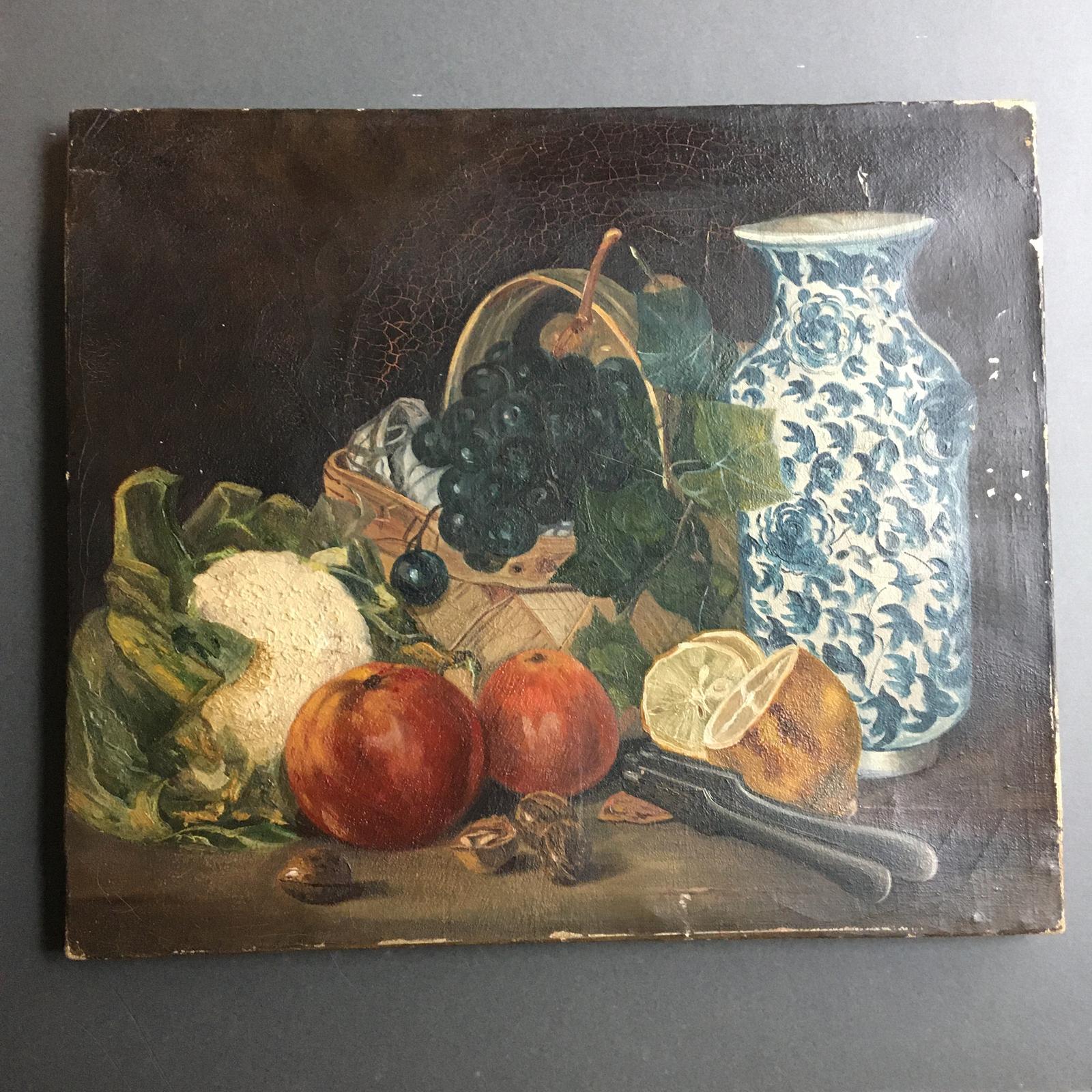 Small Vintage Oil on Canvas Still Life - Not Framed Not Signed but Very Decorative