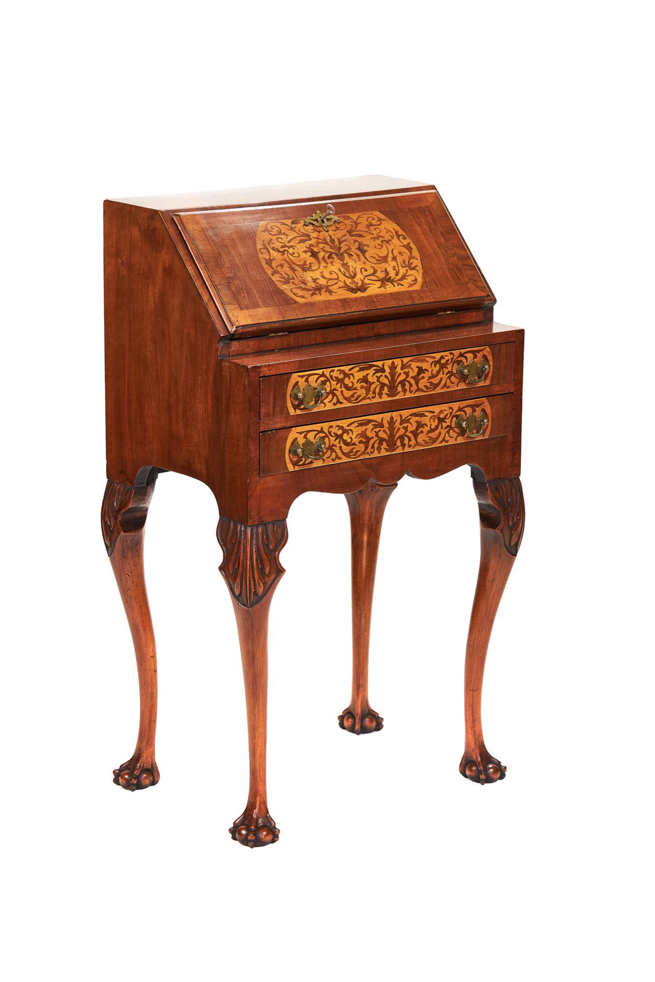 Small Walnut Bureau with Marquetry Seaweed Inlay c.1920 (1 of 7)