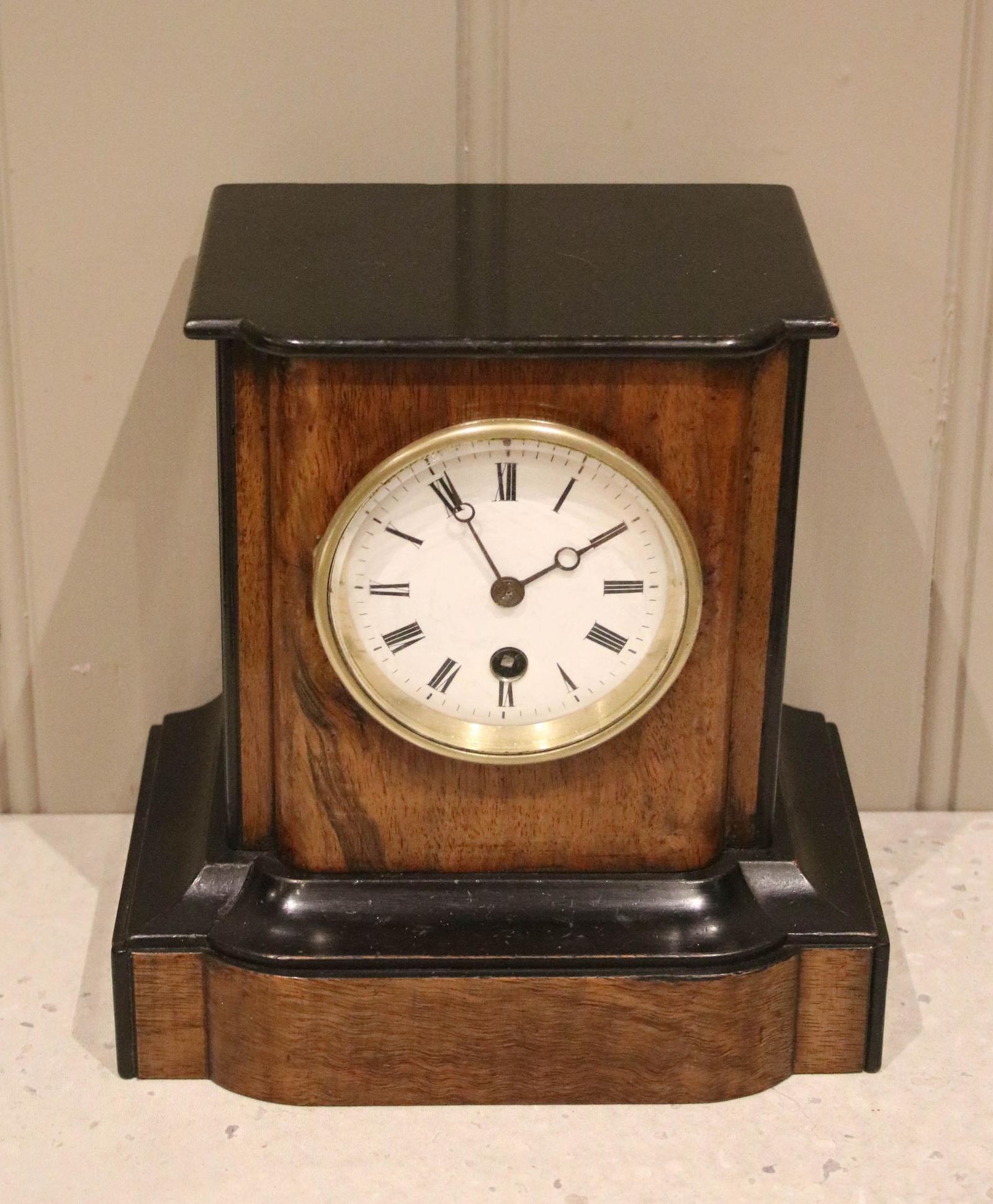 Small Walnut & Ebonised Timepiece Mantel Clock