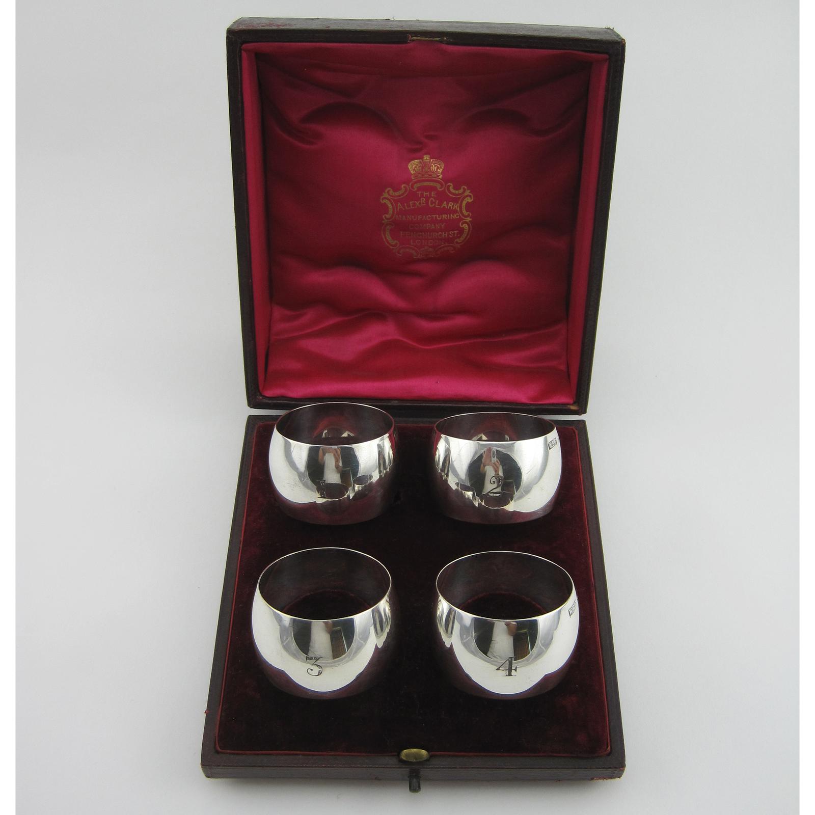Smart Plain Boxed Set of Four Edwardian Silver Napkin Rings (1 of 5)