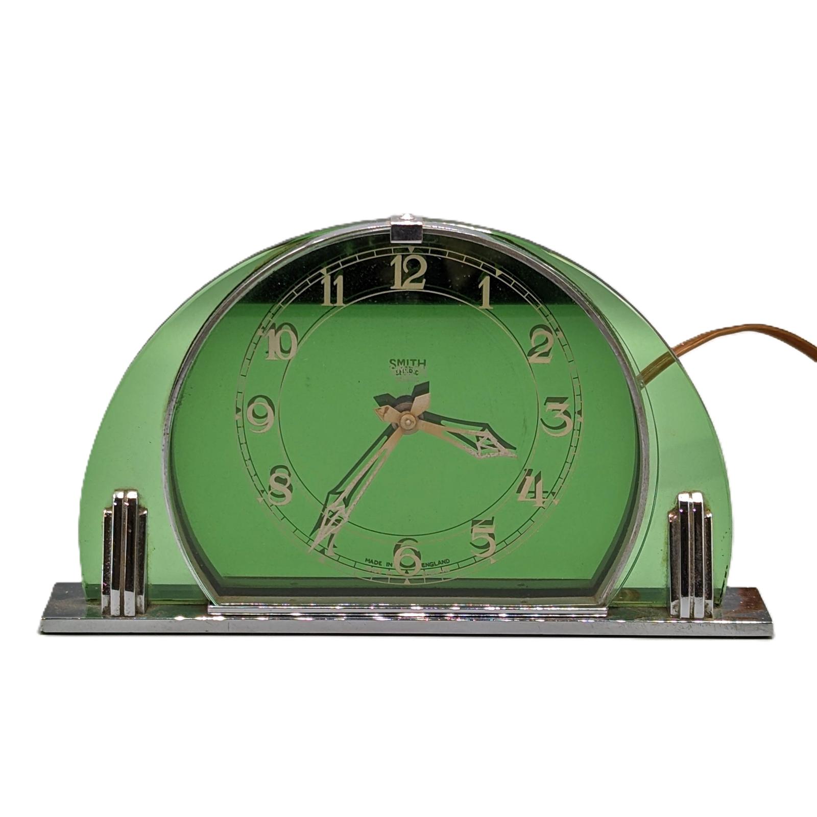 Smiths Art Deco Green Glass Electric Mantel Clock