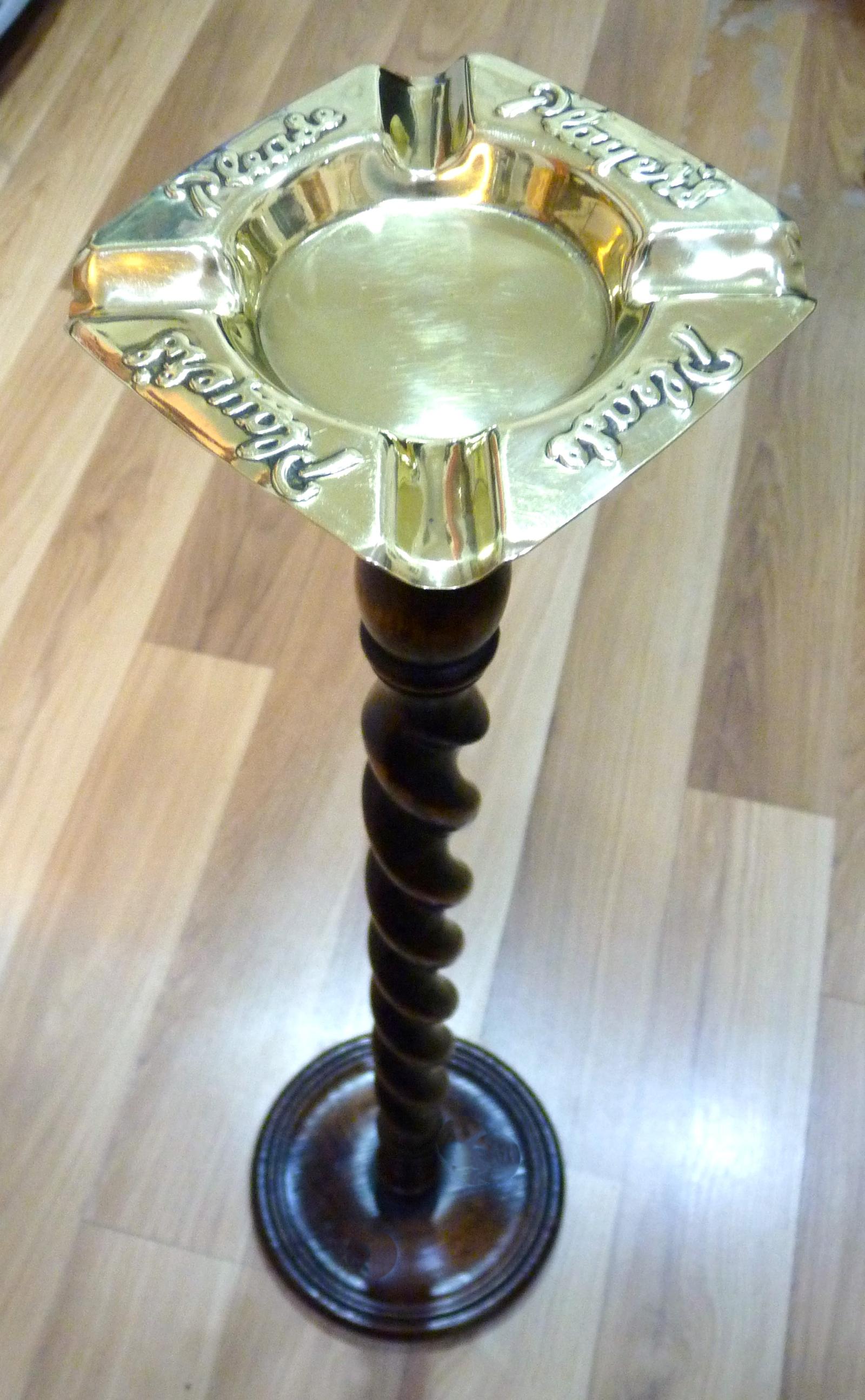 Smokers Stand: Vintage Turned Smokers Stand with "Players" Signed Brass Ashtray