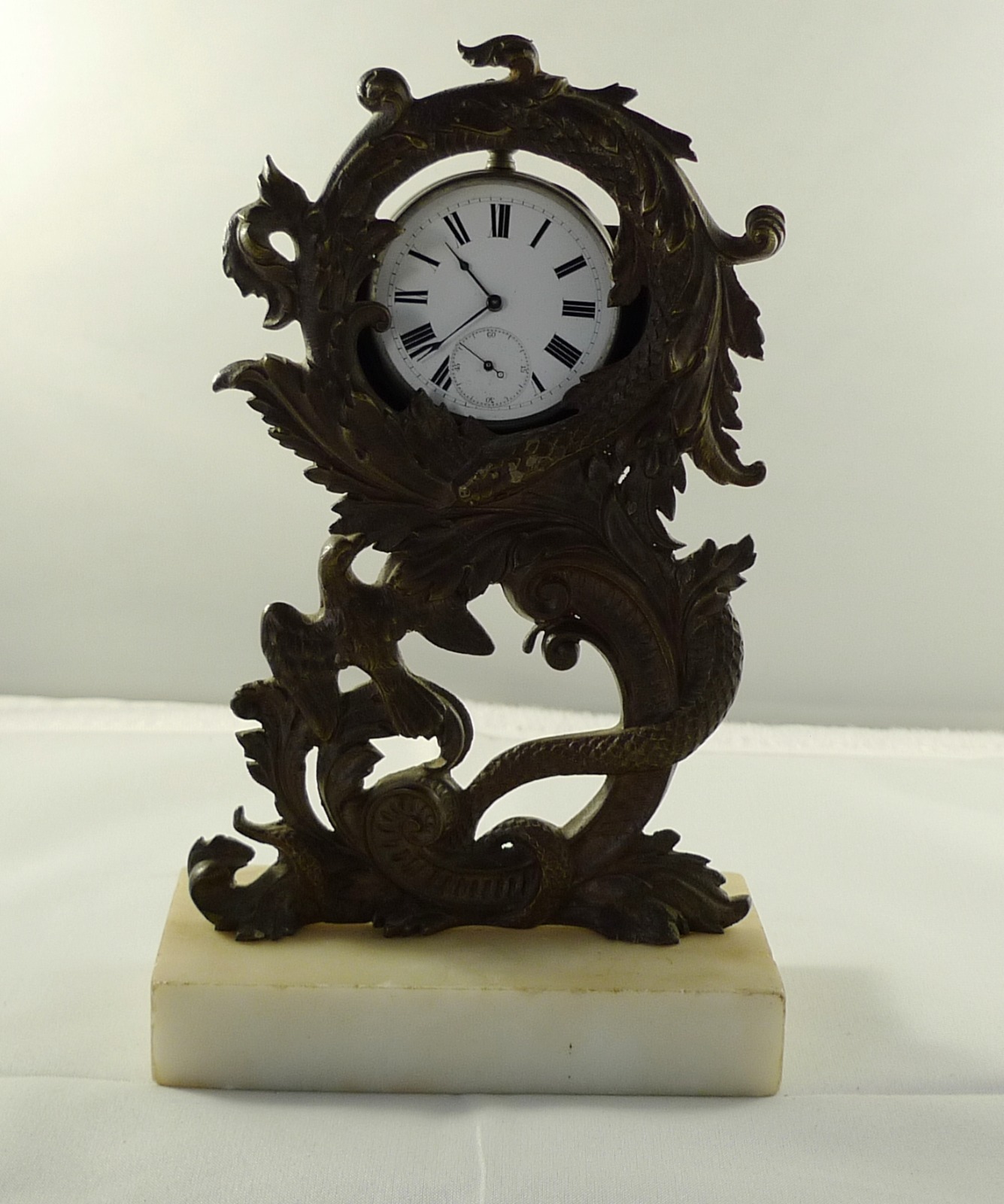 Snake & Bird Pocket Watch Holder on White Marble Stand Geneva 1880 (1 of 1)