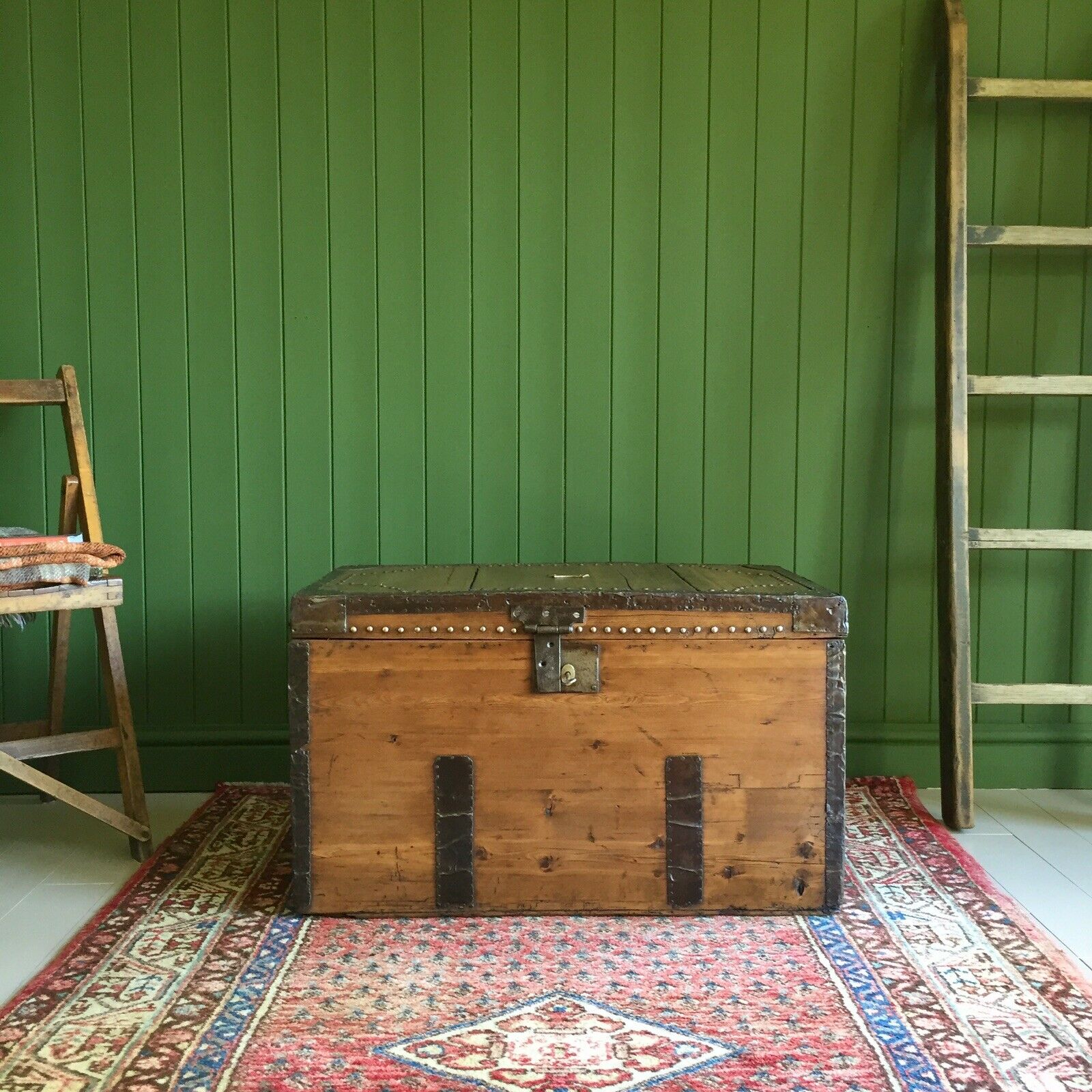 *Sold* Antique Victorian Carriage Trunk Old Pine Chest Rustic Blanket Box + Key