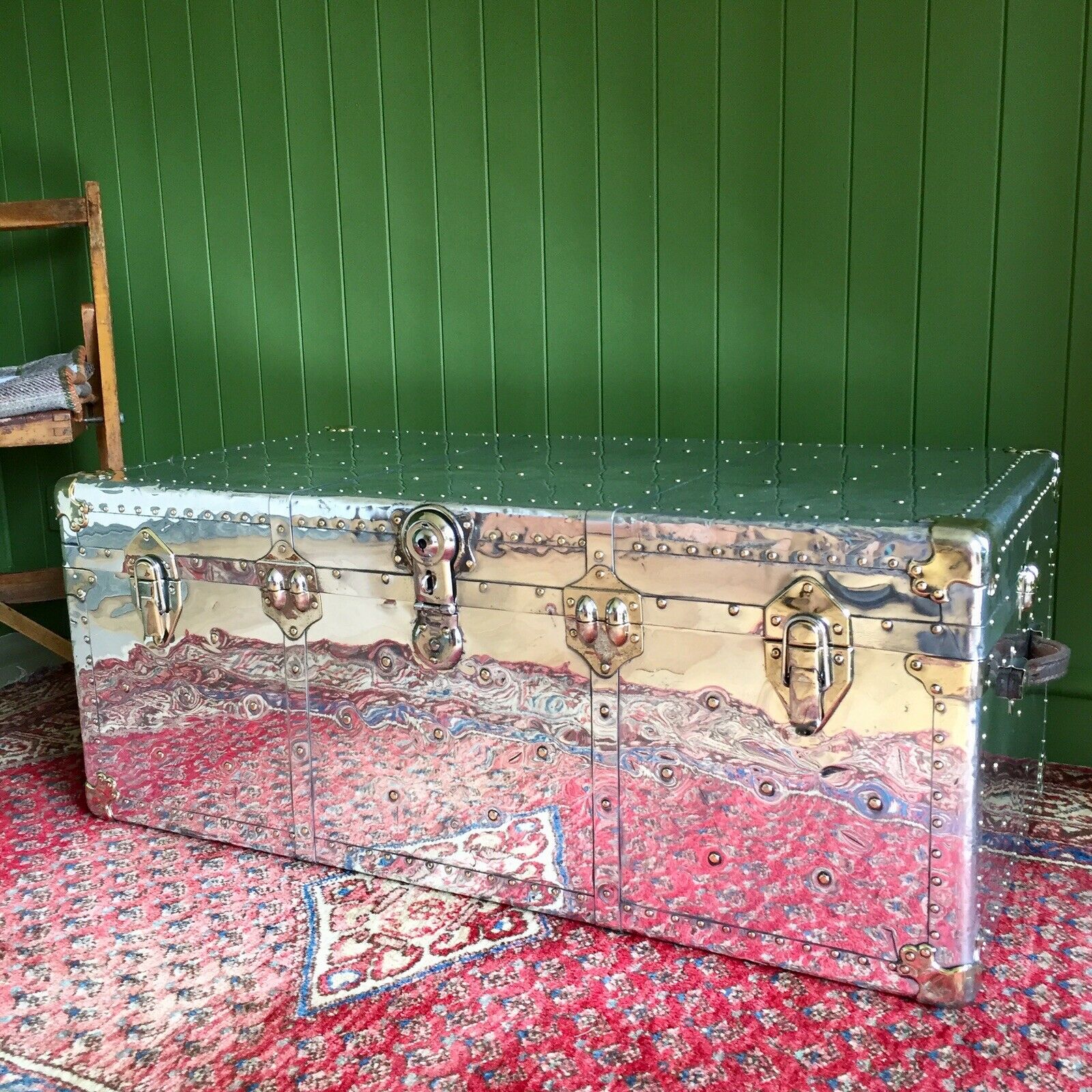 Sold - Antique Ww2 Polished Aluminium Aviation Trunk Industrial Chest Coffee Table