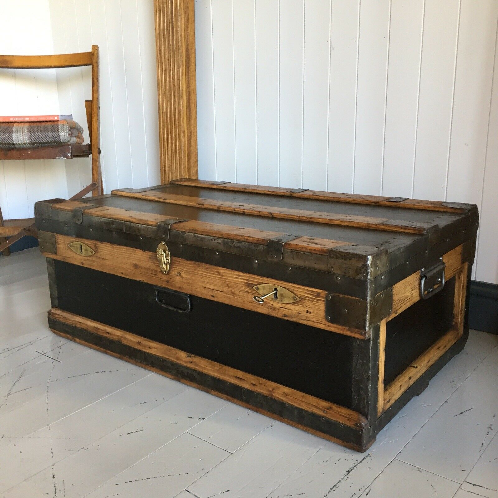 *Sold*Antique Campaign Chest WWI Military Marshall Chest Industrial Wooden Trunk Coffee Table Vintage Storage Box + Original Zinc Lining + Key
