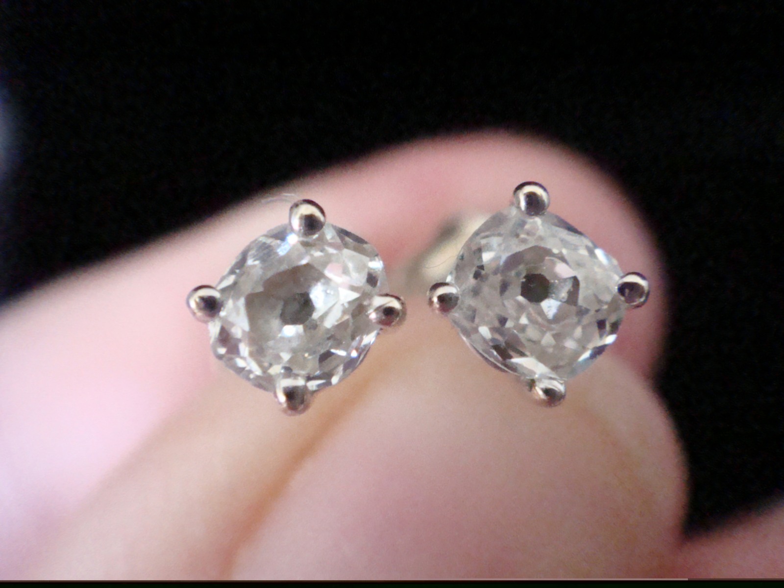 Solid 18ct White Gold Edwardian Old Cut Diamond Stud Solitaires 0.50ct