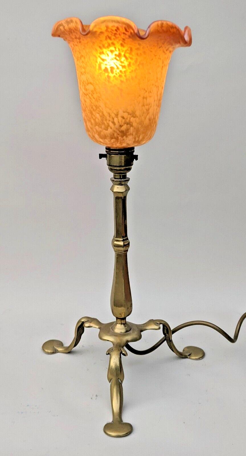 Solid Brass Tripod Lamp Amber Glass Shade (1 of 5)