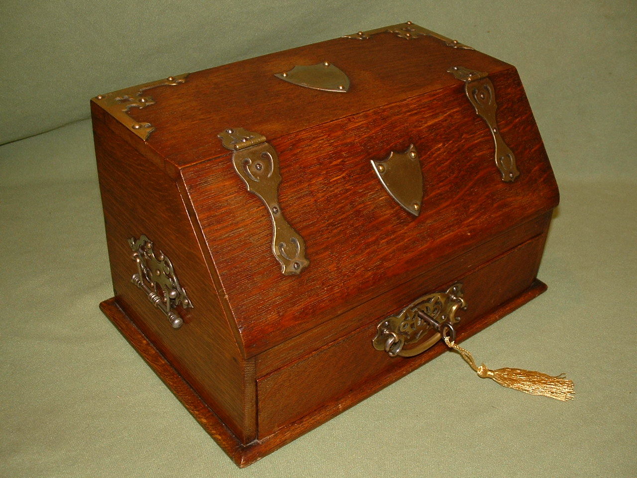 Solid Figured Oak Stationery Box + Drawer c.1900