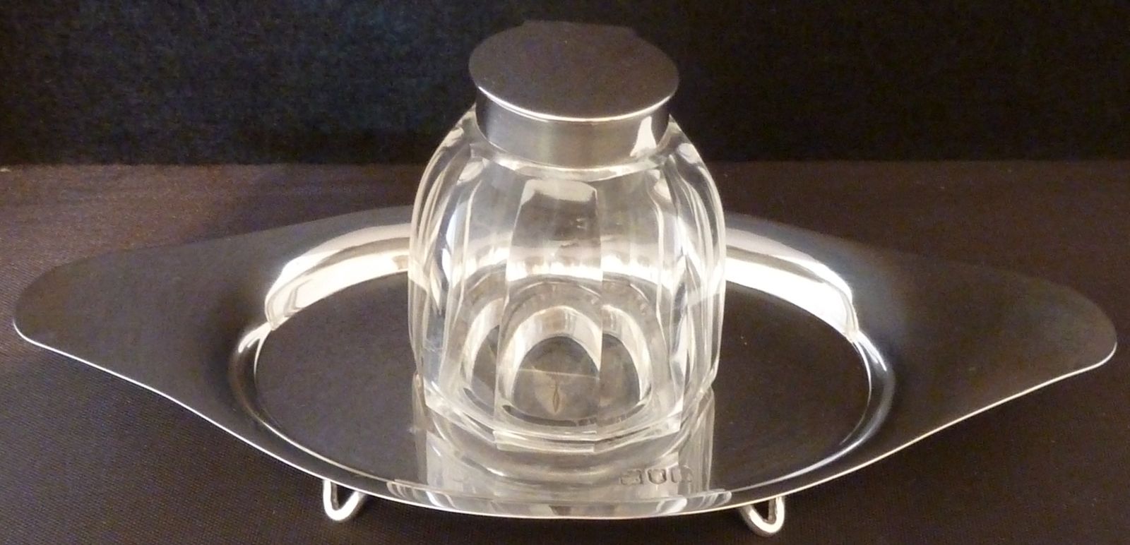 Solid Hallmarked Silver Inkwell Desk Stand Goldsmiths & Silversmiths of London
