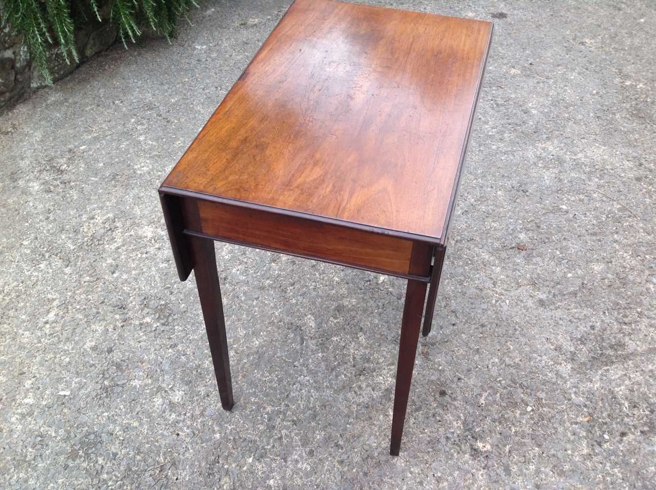 Solid Mahogany Georgian Revival Drop Leaf Table Stamped Jas Shoolbred & Co with Single Long Drawer