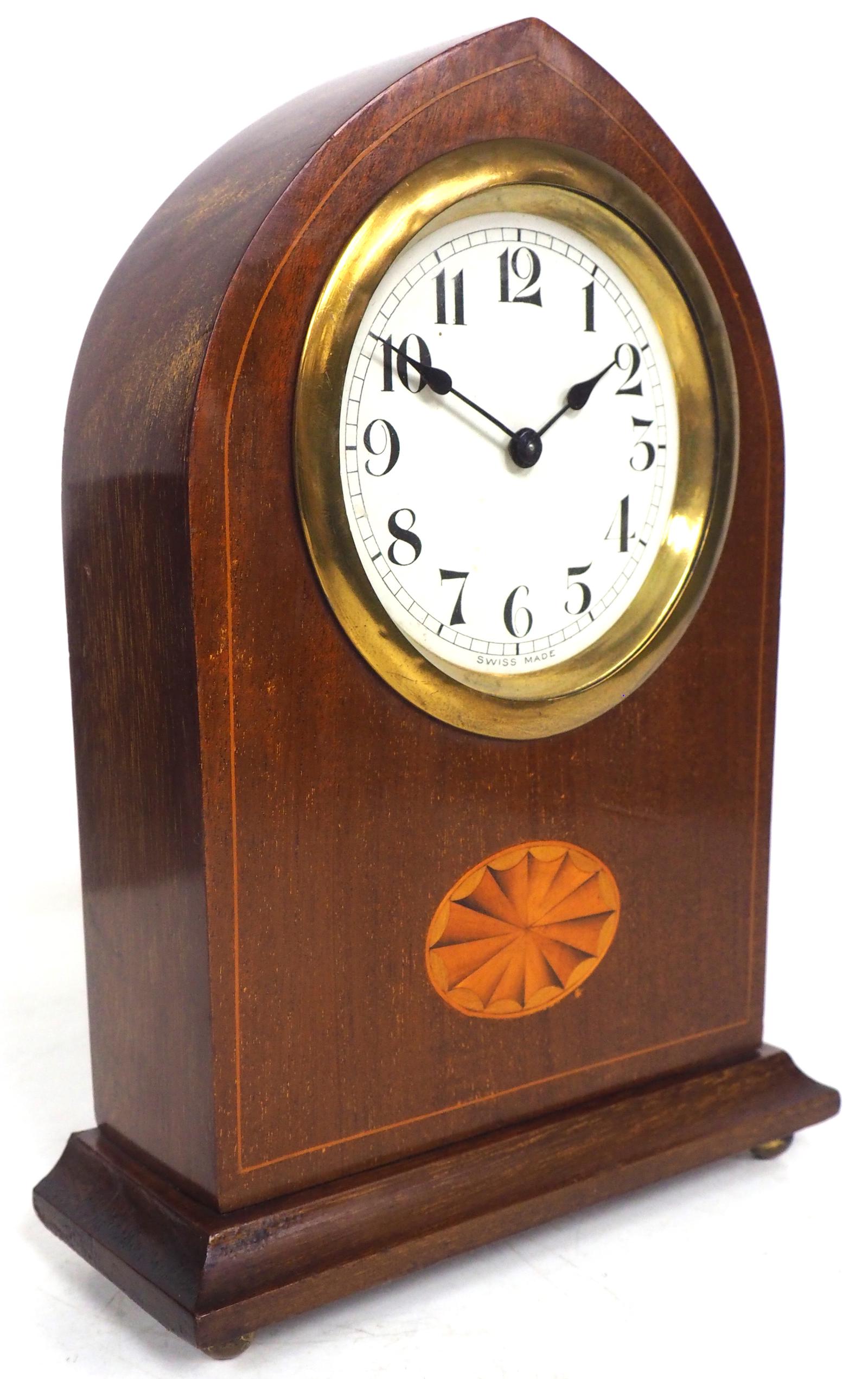 Solid Mahogany Lancet Cased Timepiece Clock with Satinwood Inlaid Decoration (1 of 9)