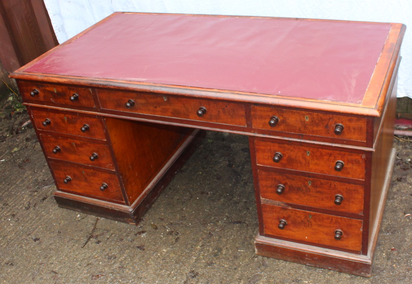 Solid Mahogany Pedestal Desk with Red Leather Inset c.1905