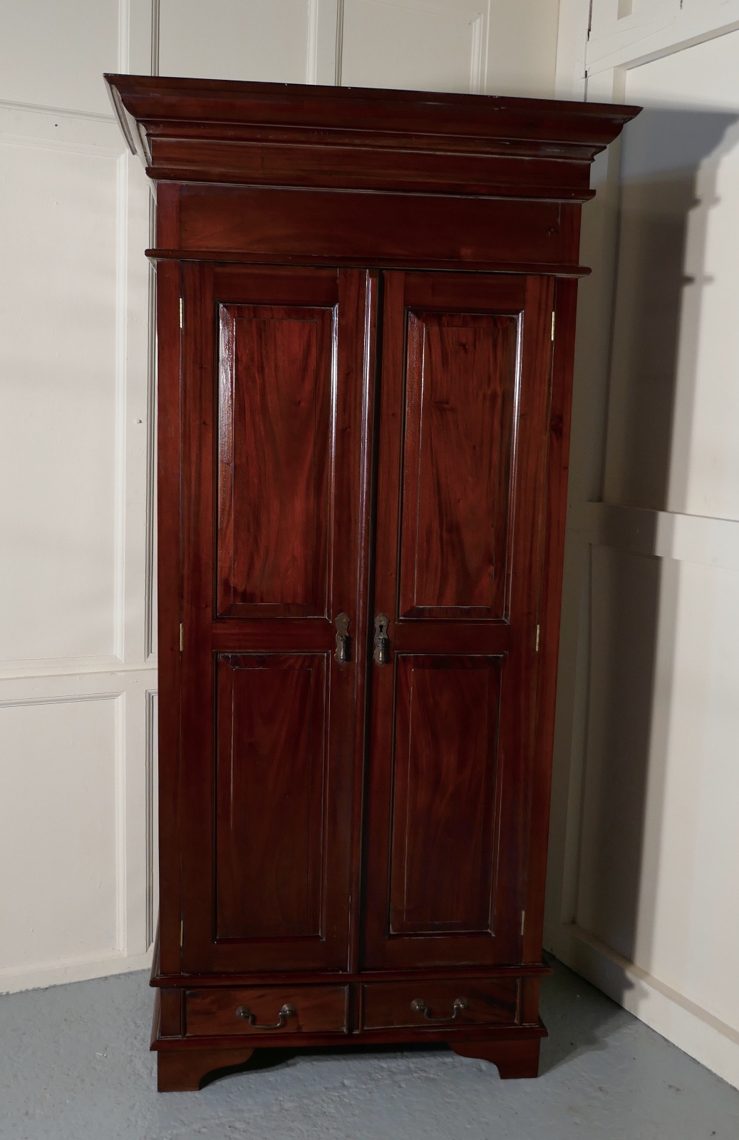 Solid Mahogany Shelved Armoire Hanging Wardrobe