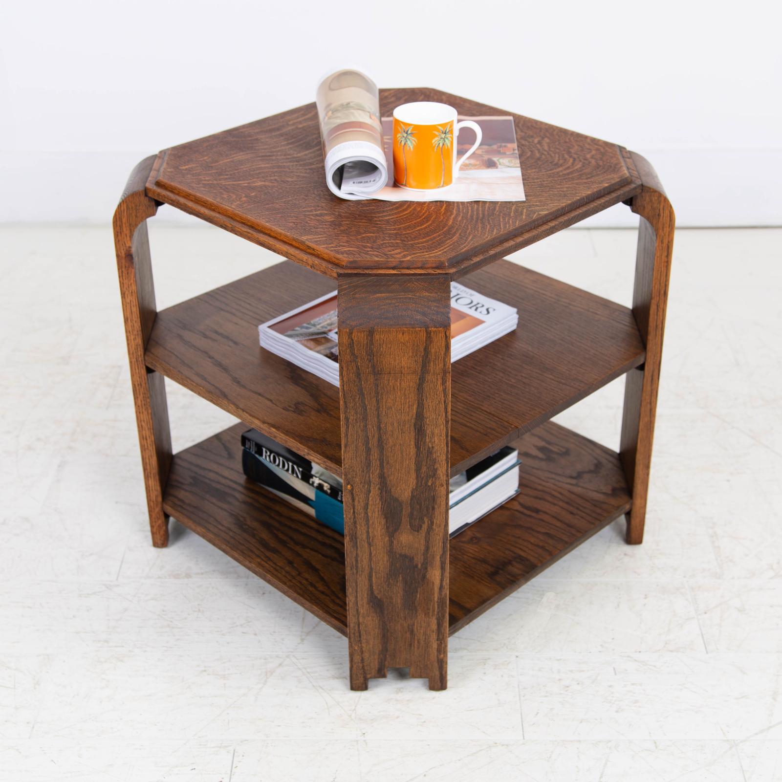Solid Oak 3 Tier Art Deco Side Table c.1930
